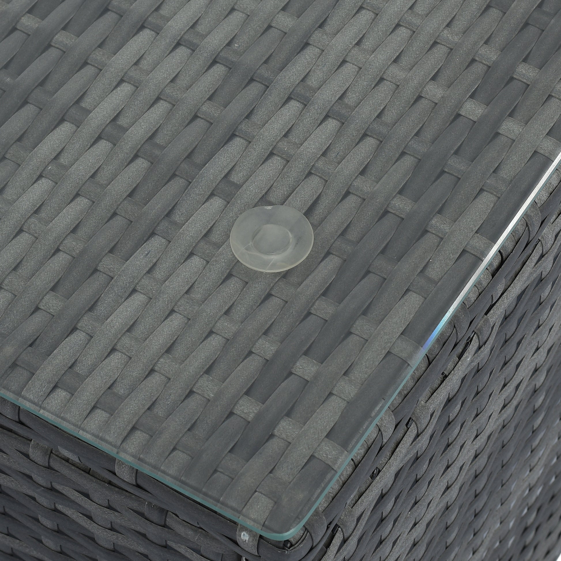 - [Simple Cleaning] Those cushions are made of Sun Umbrella fabric that is waterproof, UV-proof and corrosion-proof for many years to use. The tempered glass is connected to the wicker table top through suction cups, which is very safe and stable. They only need a rag to keep them clean and tidy. While those pillows are equipped with zippers and only needs a simple cleaning.