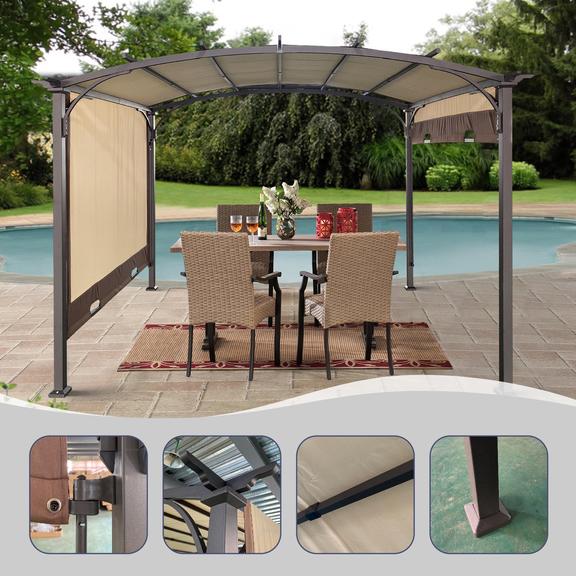 12 x 9 Ft Outdoor Pergola Retractable Shade Canopy Arched Gazebo with Adjustable Waterproof Sun Shade Pergola for Garden Lawn Deck (Beige)