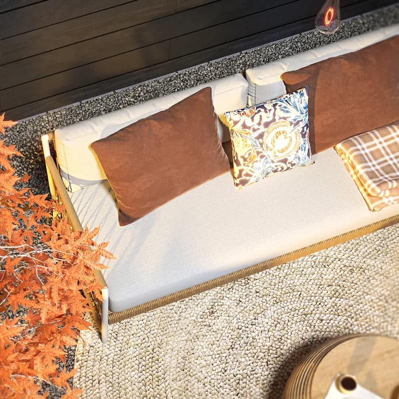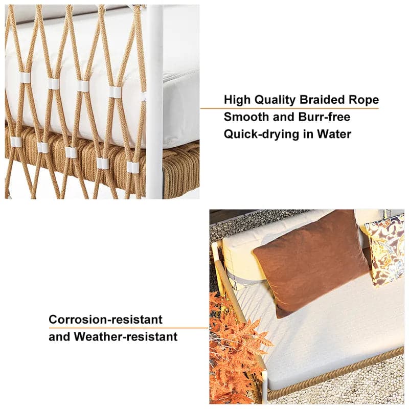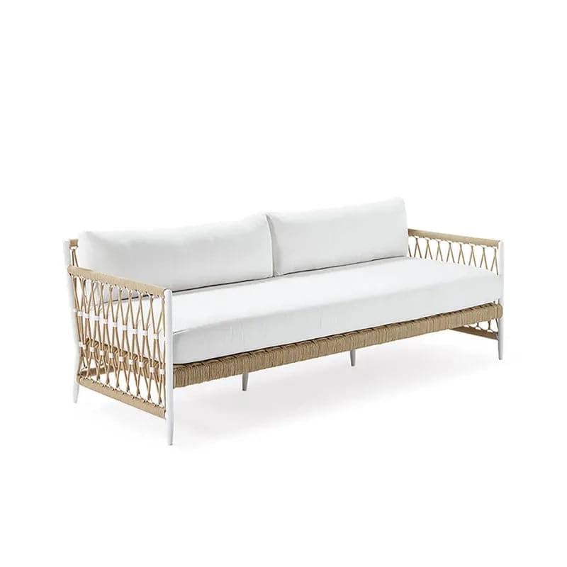 Woven Rope Outdoor Sofa 3-Seater Sofa with White Polyester Pillow Cushion