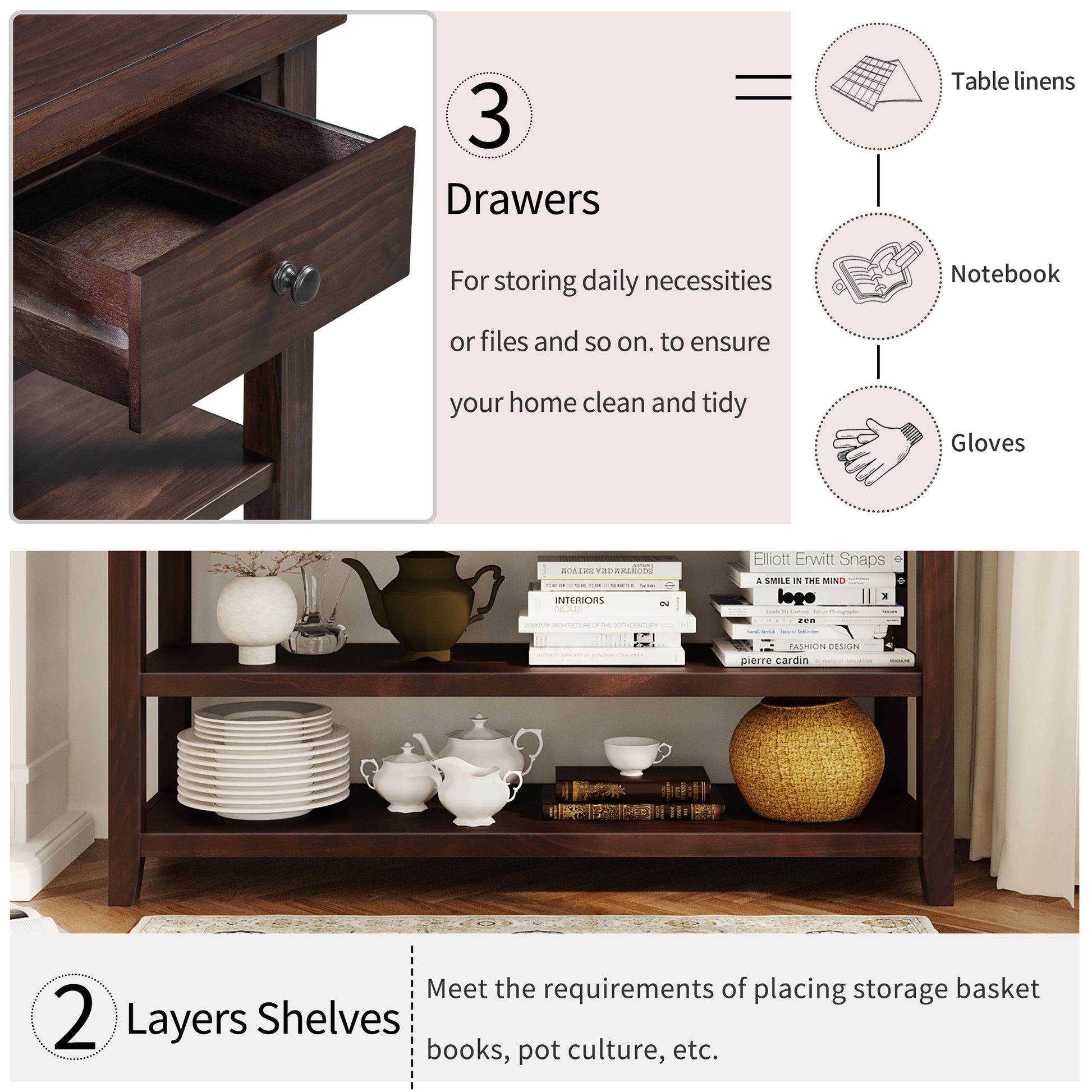 - 3 Drawers & 2 Layers Shelves: There are 3 drawers set under the tabletop to offer large room for storing daily necessities or files, and so on. You can keep daily sundries out of your sight to ensure your home clean and tidy. Round retro handles with fine craftsmanship shows a delicate and elegant life attitude. As a practical console table, the open style shelf is a vital element. The setting of 2 open shelves meet the requirements of placing storage basket, books, pot culture, etc.