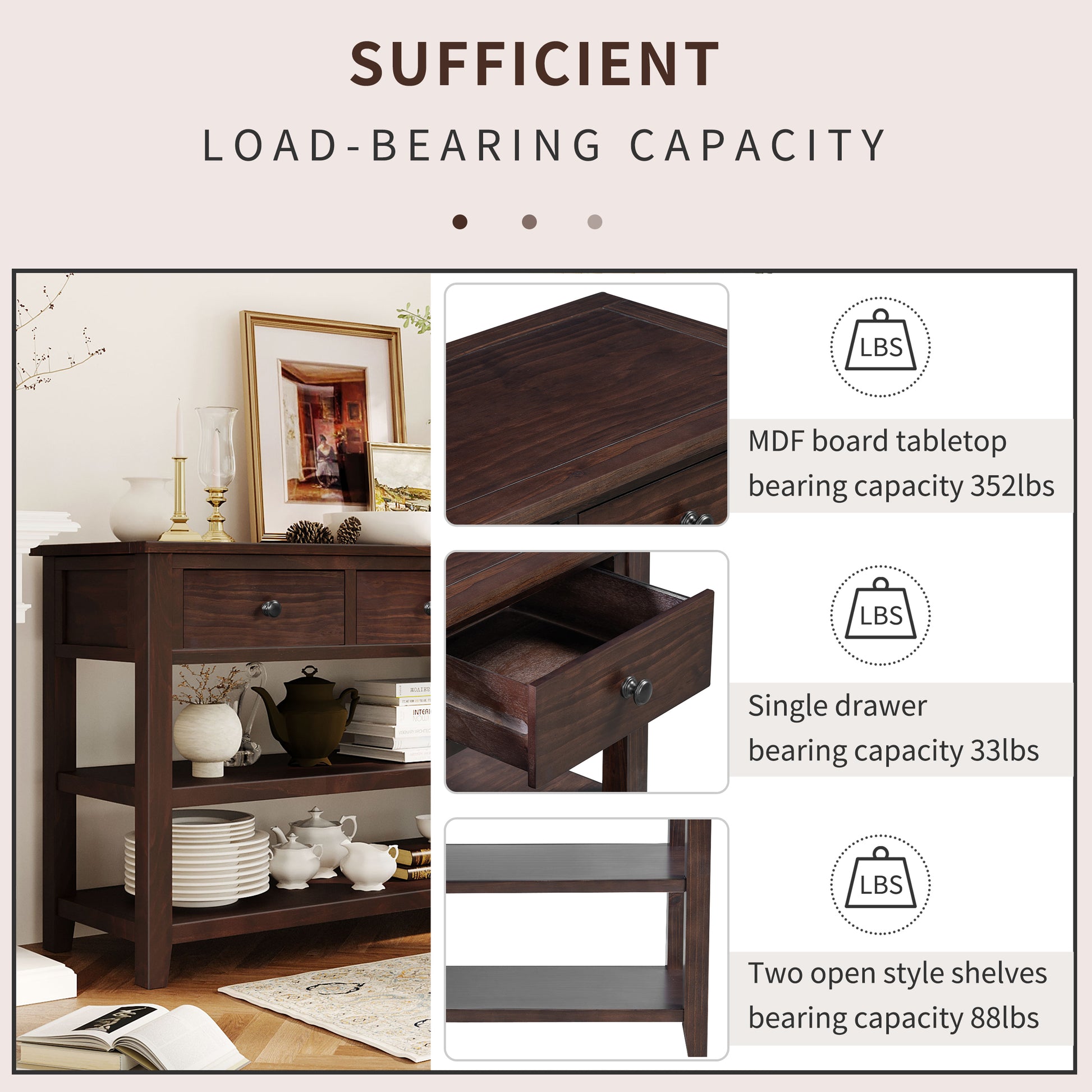 TREXM Retro Design Console Table with Two Open Shelves, Pine Solid Wood Frame and Legs for Living Room (Espresso)