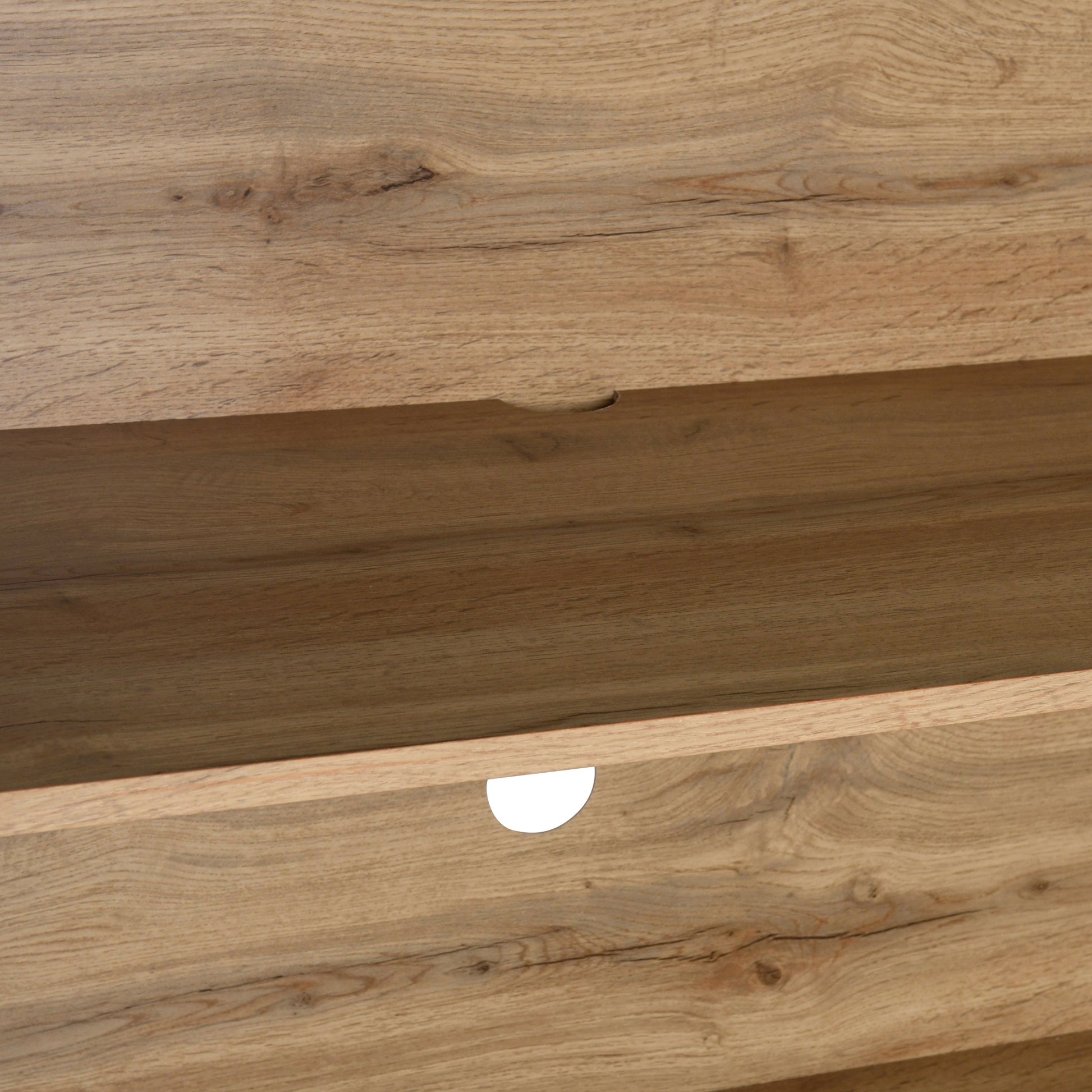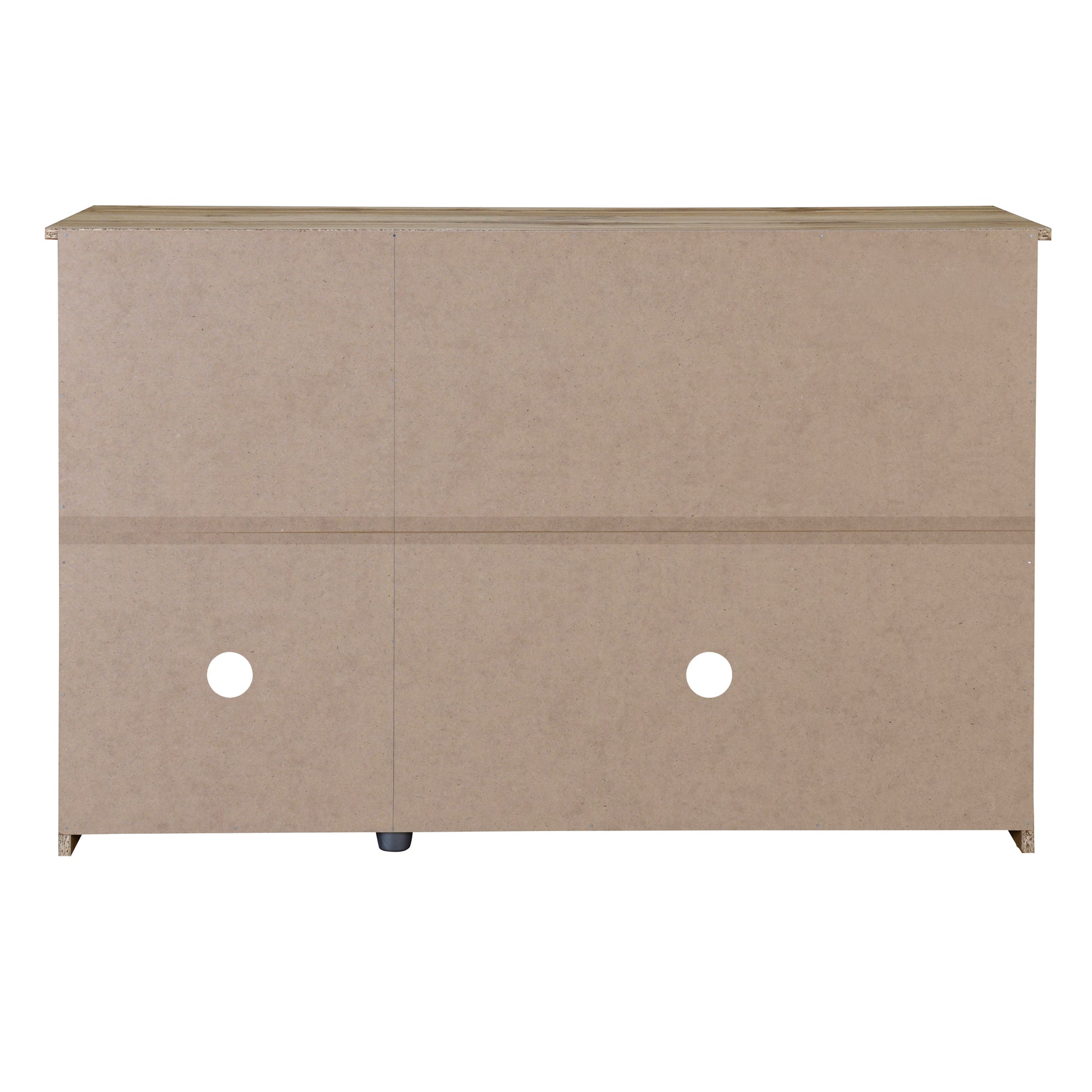 Functionality meets style with this sideboard's generous storage capabilities. Inside, you'll find two middle shelves on either side, perfectly sized to hold a variety of items, from dinnerware to multimedia devices. Additionally, the shelves and back panel feature cable management holes, making it easy to organize the wires of electronic devices. This thoughtful design ensures your space remains tidy and functional while maintaining a vintage aesthetic.