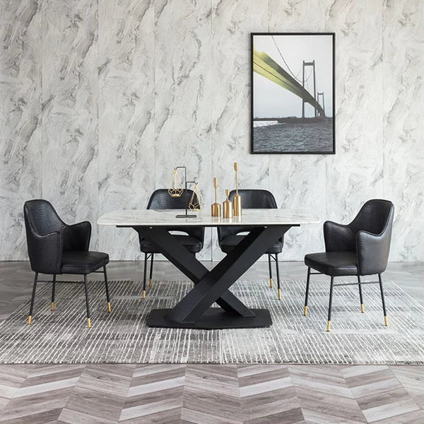 Black Faux Leather Upholstered Dining Chair (Set of 2) High Back with Arm Metal Leg