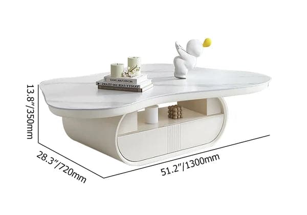 Cloud Coffee Table Wood Irregular Sintered Stone Top in White with Drawer Storage