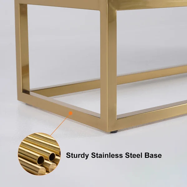 Add a touch of glamorous accent to your space with this delicate sideboard cabinet. Featuring a rectangular silhouette with a blue tone, the sideboard lends a decent appeal for a luxurious update. Designed with four cabinet doors with three interior shelves, it is ideal to store your crockery and other dining essentials. Otherwise, the ample tabletop offers an ideal spot for decorative items and collected curios, practical and fashionable. Founded atop an open stainless steel base in a gold finish, it ensures sturdy support and stability for a timeless look and beauty.