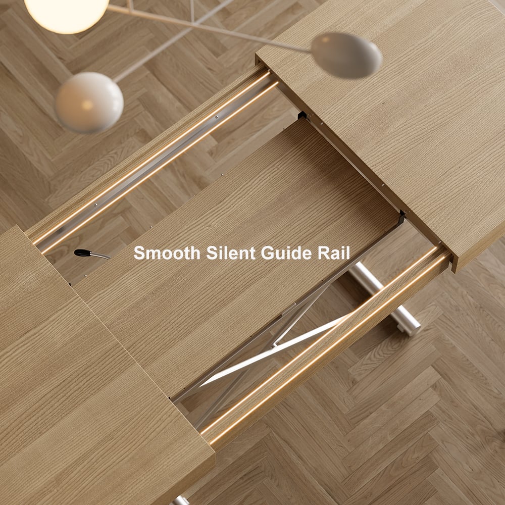 Modern Natural Wood Extendable Coffee Table & Dining Table Rectangle Height Adjustable