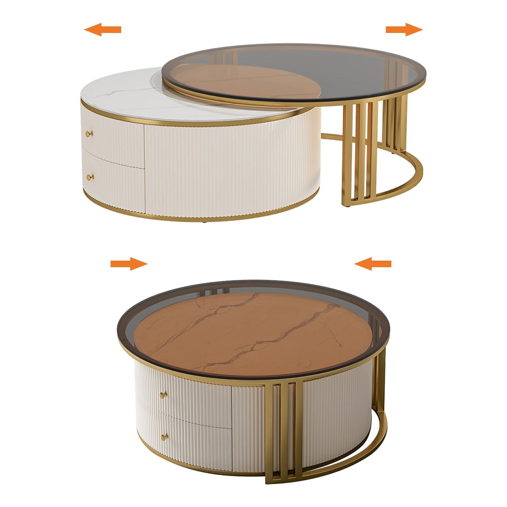 Modern Nesting Sintered Stone Top Off-White Round Glass Small Coffee Table with Storage