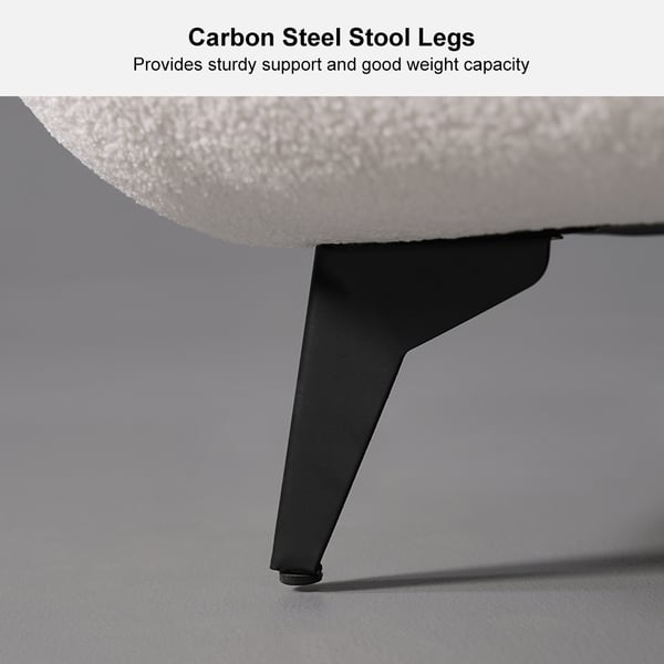 Relax in style and comfort with our modern boucle fabric armchair and ottoman set. Made with soft and fluffy boucle fabric, this chair with a footstool set is designed for long-lasting comfort without collapsing. The footrest allows you to rest your legs and enhance your relaxation experience. The chair features a sturdy wooden frame, and carbon steel feet for special design detail, with a matching pouf ottoman.