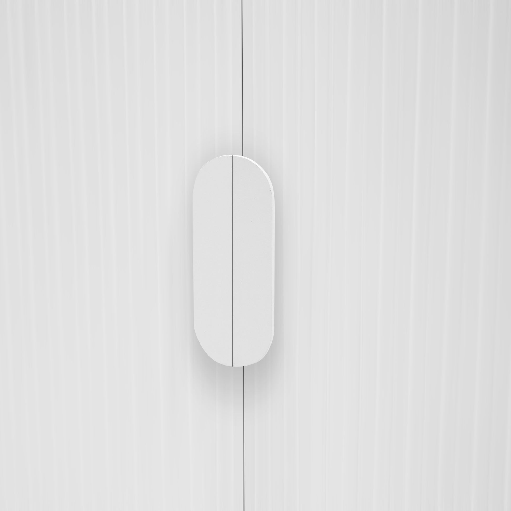 The presence of vertical stripes and curved cabinet surfaces adds a touch of sophistication to the cabinet.