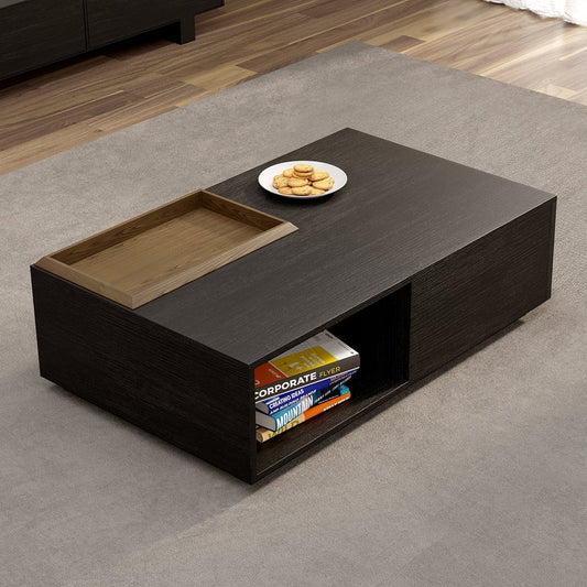Rectangular Wood Coffee Table with Drawer & Removable Tray top Black & Walnut