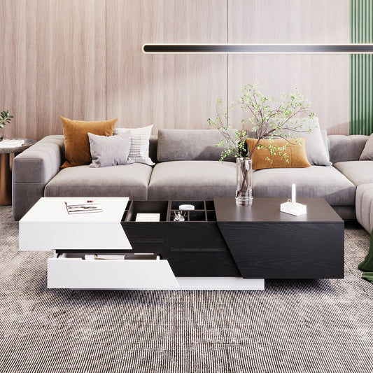 Modern Extendable Sliding Top Coffee Table with Storage in White&Black