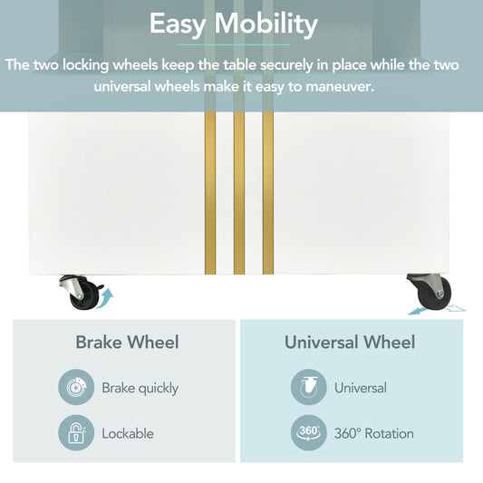 ON-TREND Modern Luxury TV Stand and Coffee Table Set of 2, High Gloss Faux Marble Top, TV Stand for TVs Up to 78'', Rectangle Coffee Table with Caster Wheels for Living Room, White