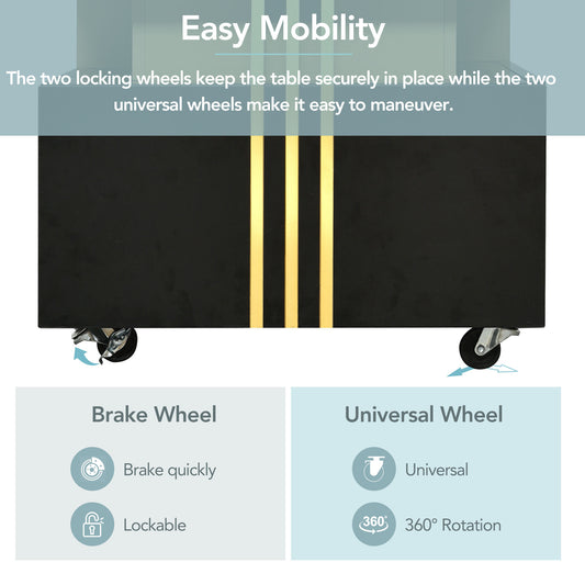 Modern Glass Console Table, 55" Gold Sofa Table with Sturdy Metal Frame and Black Tempered Glass Top, for Living Room Entryway Bedroom, Gold Finish