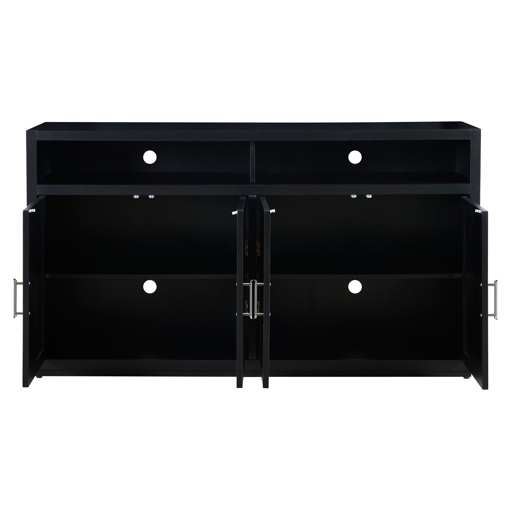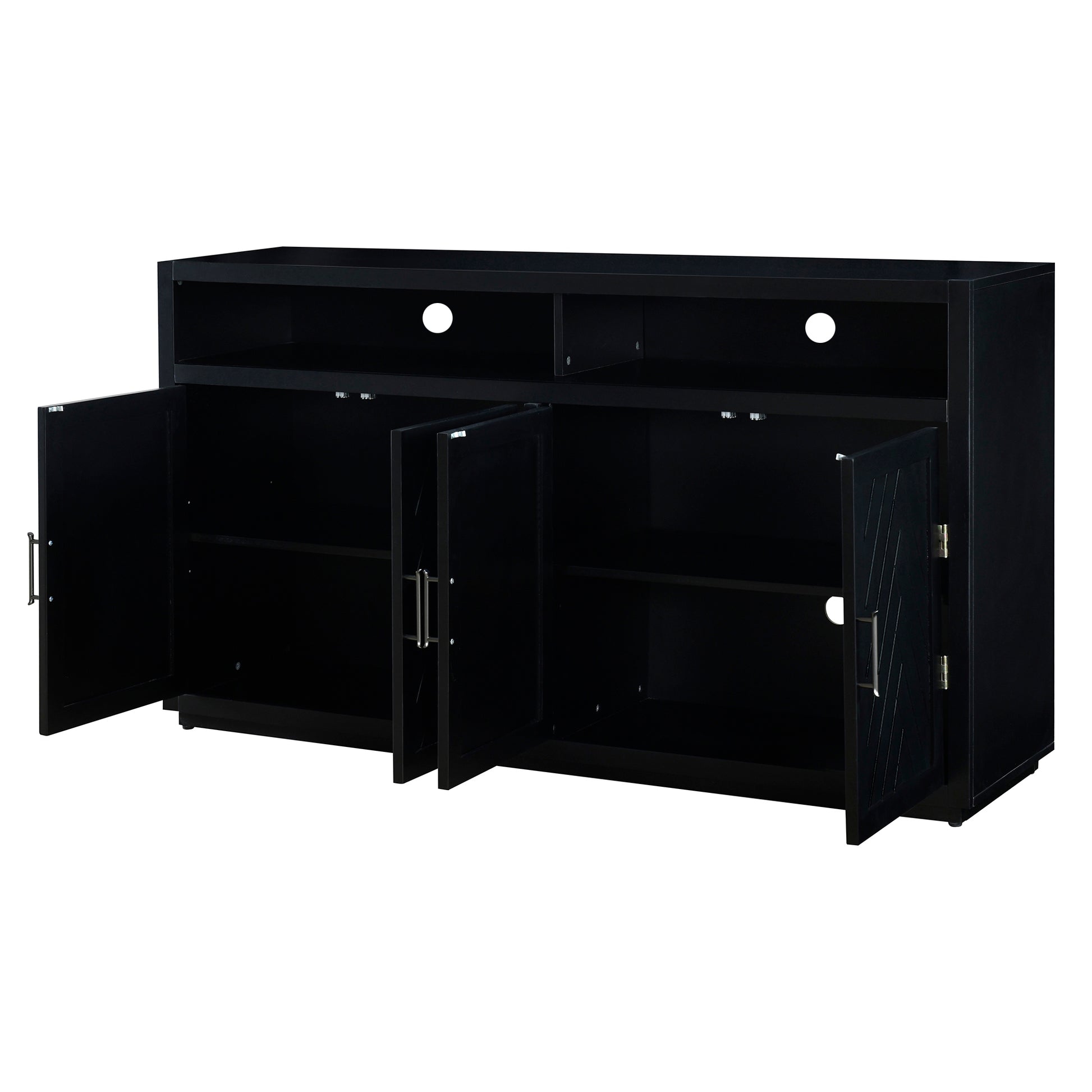 Home Sideboards & Buffets TREXM 4-door Classic Sideboard with Open Storage and Adjustable Shelves Perfect for kitchens, living rooms (Black)