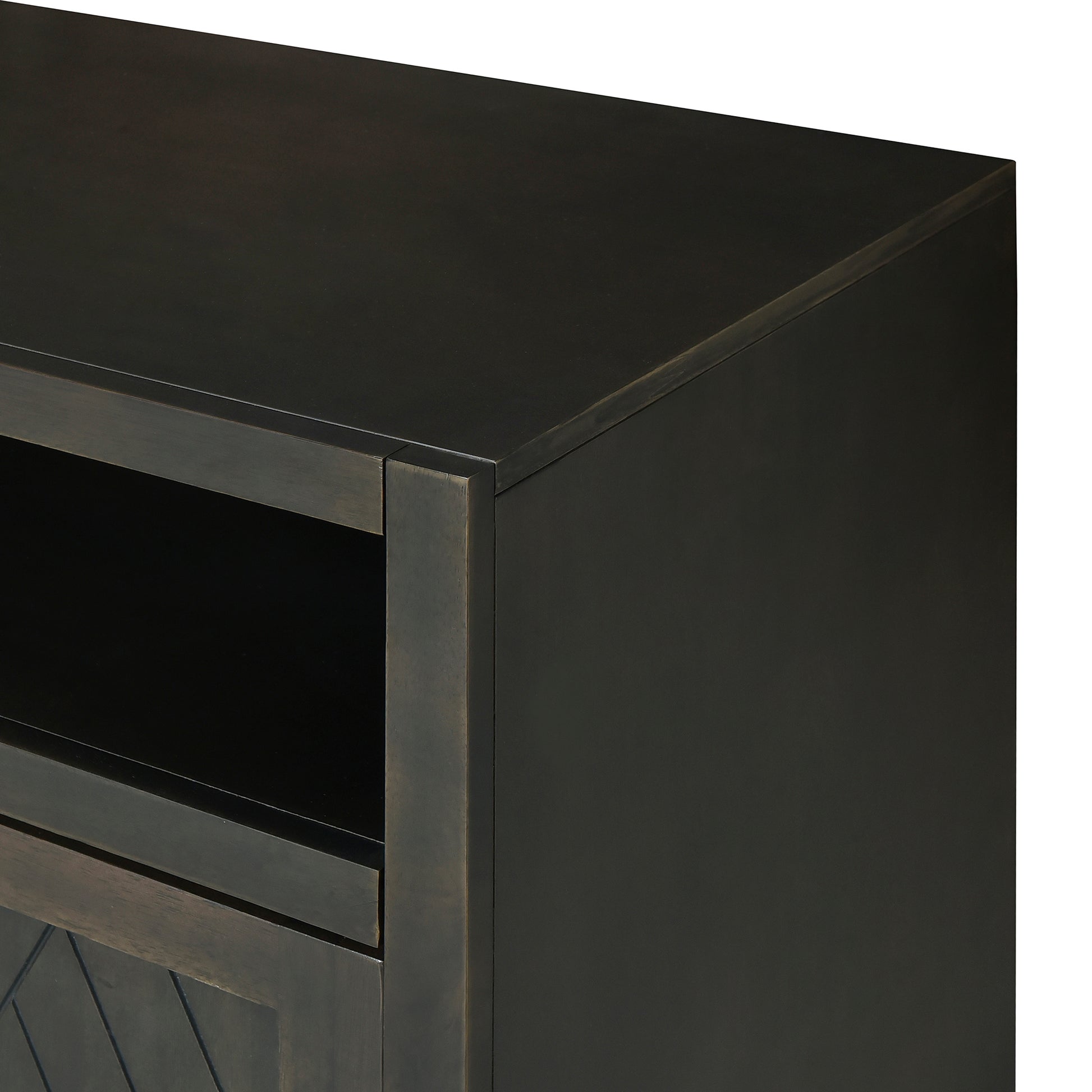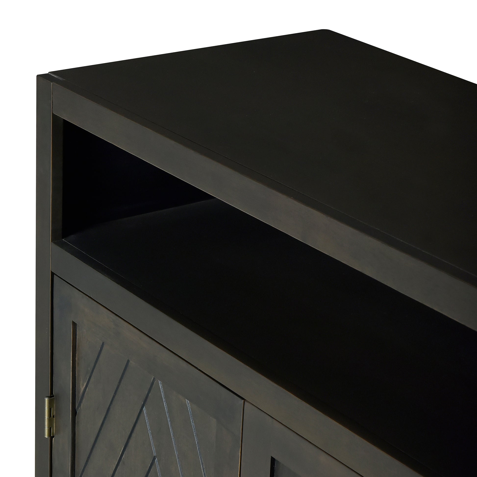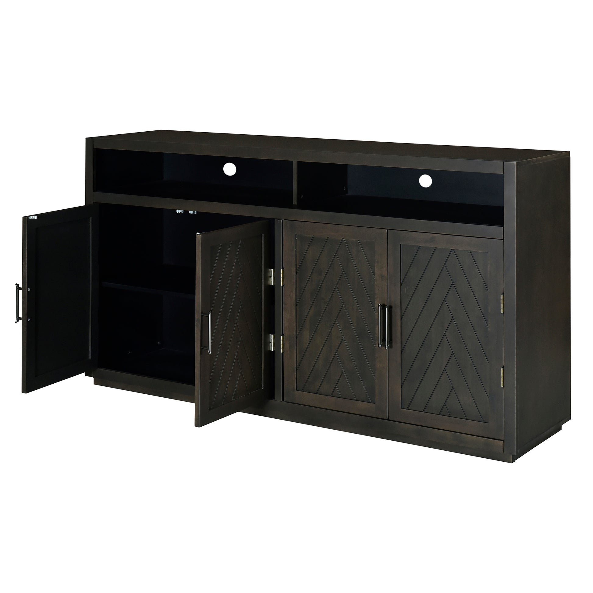 - Distinctive Aesthetic Features: The sideboard boasts a classic gray brown finish that exudes a sense of luxury and style. The unique chevron design on the doors provides a subtle yet impactful geometric element, while the electroplated metal handles add a touch of contrast and refinement. The open shelf space on top offers both functionality and a place to showcase decorative items, enhancing the overall look of the piece.