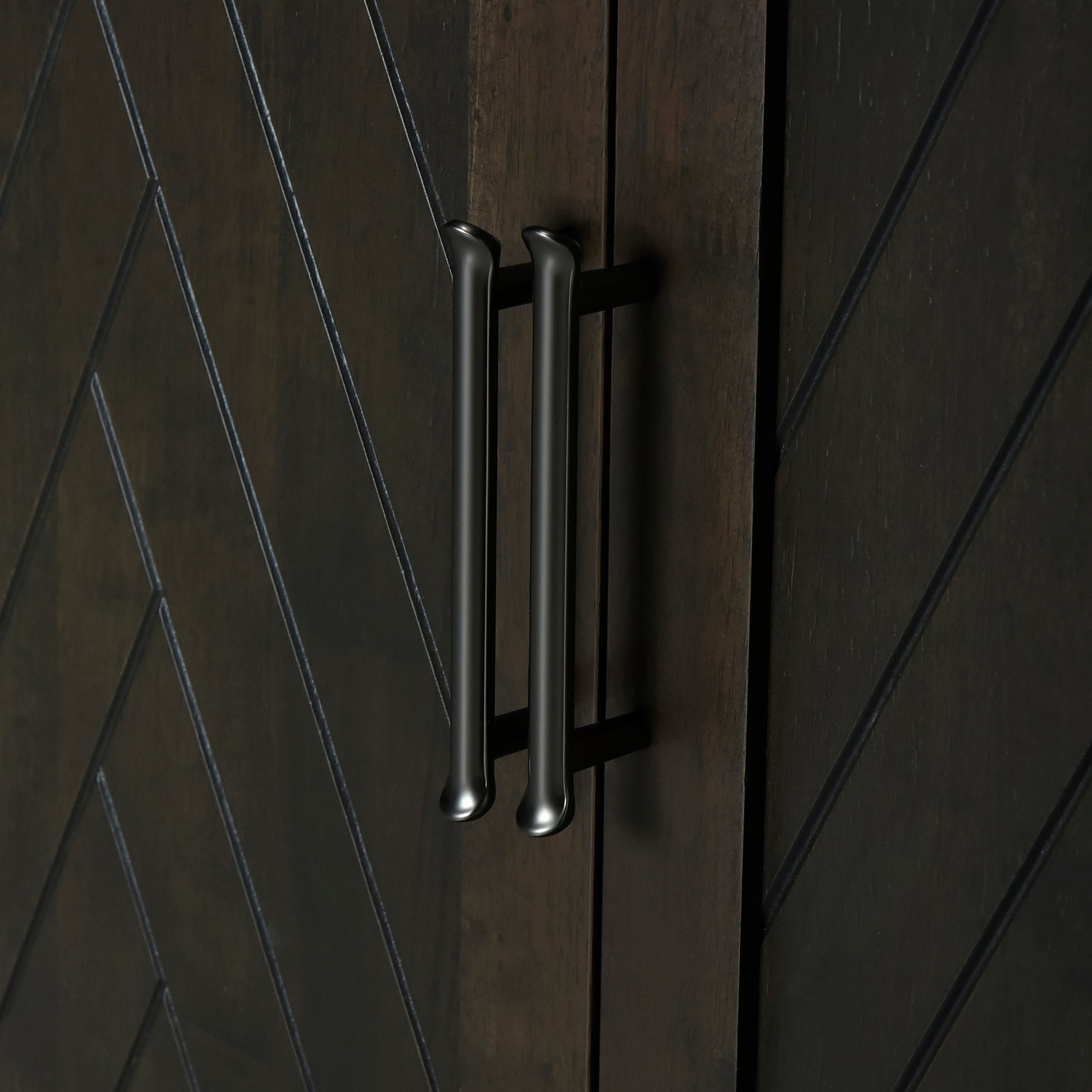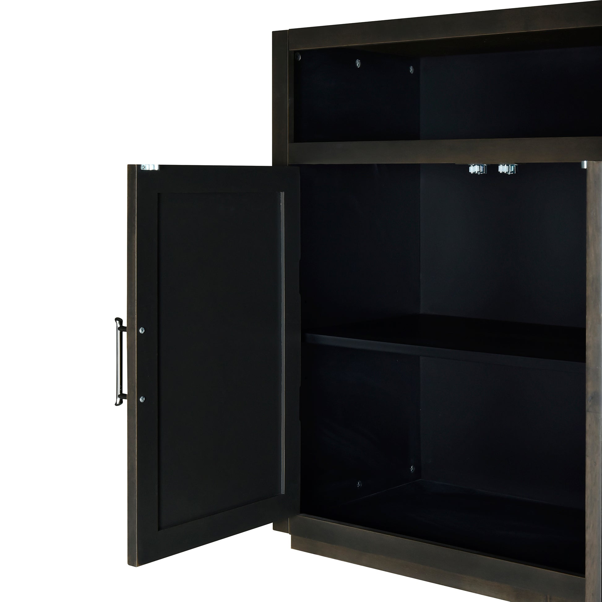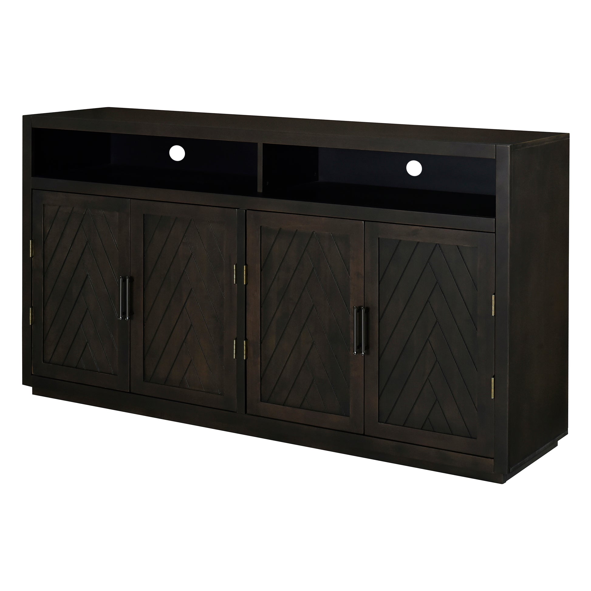 - Distinctive Aesthetic Features: The sideboard boasts a classic gray brown finish that exudes a sense of luxury and style. The unique chevron design on the doors provides a subtle yet impactful geometric element, while the electroplated metal handles add a touch of contrast and refinement. The open shelf space on top offers both functionality and a place to showcase decorative items, enhancing the overall look of the piece.