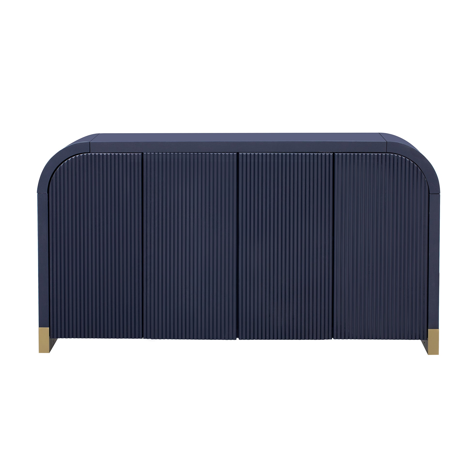 U_STYLE 4-door Curved Corner Design Wavy Door Panel Cabinet with Adjustable Shelves, Suitable for Study, Living Room and Entrance