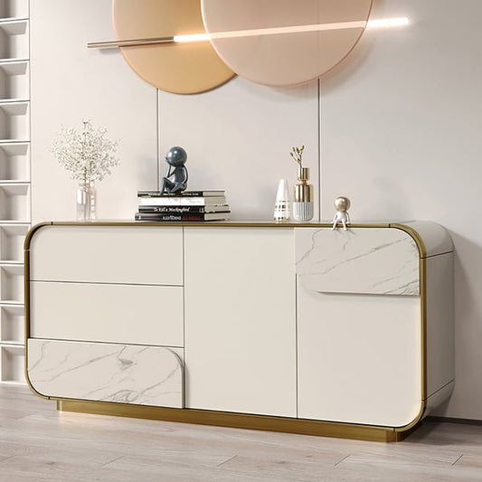 63" Modern Off White Sideboard Buffet with Storage White Sintered Stone