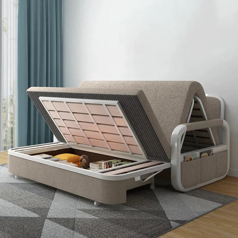 This sofa bed sleeper, which is trendy and multipurpose is plush cotton linen sleeper couch, can be turned into a comfy sleeping sofa and provides storage below. The couch bed with storage comprises high-quality foam, which is upholstered in high-quality fabric for unparalleled durability. Multiple small but strong independent legs for free and simple support, you may set each of them to various degrees to suit different persons. This beautiful sectional couch has a unique style and is the perfect decoration for any event, and they create an eye-catching and warm appeal at the office, home, or remote location adventure.