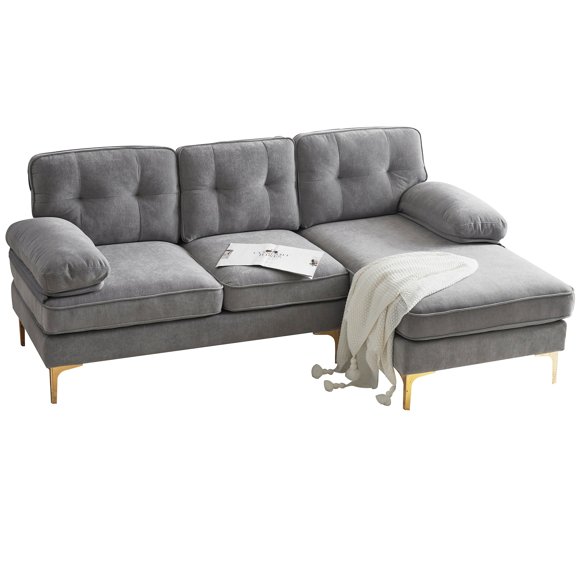 83" Modern Sectional Sofas Couches Velvet L Shaped Couches for Living Room, Bedroom, Light Grey