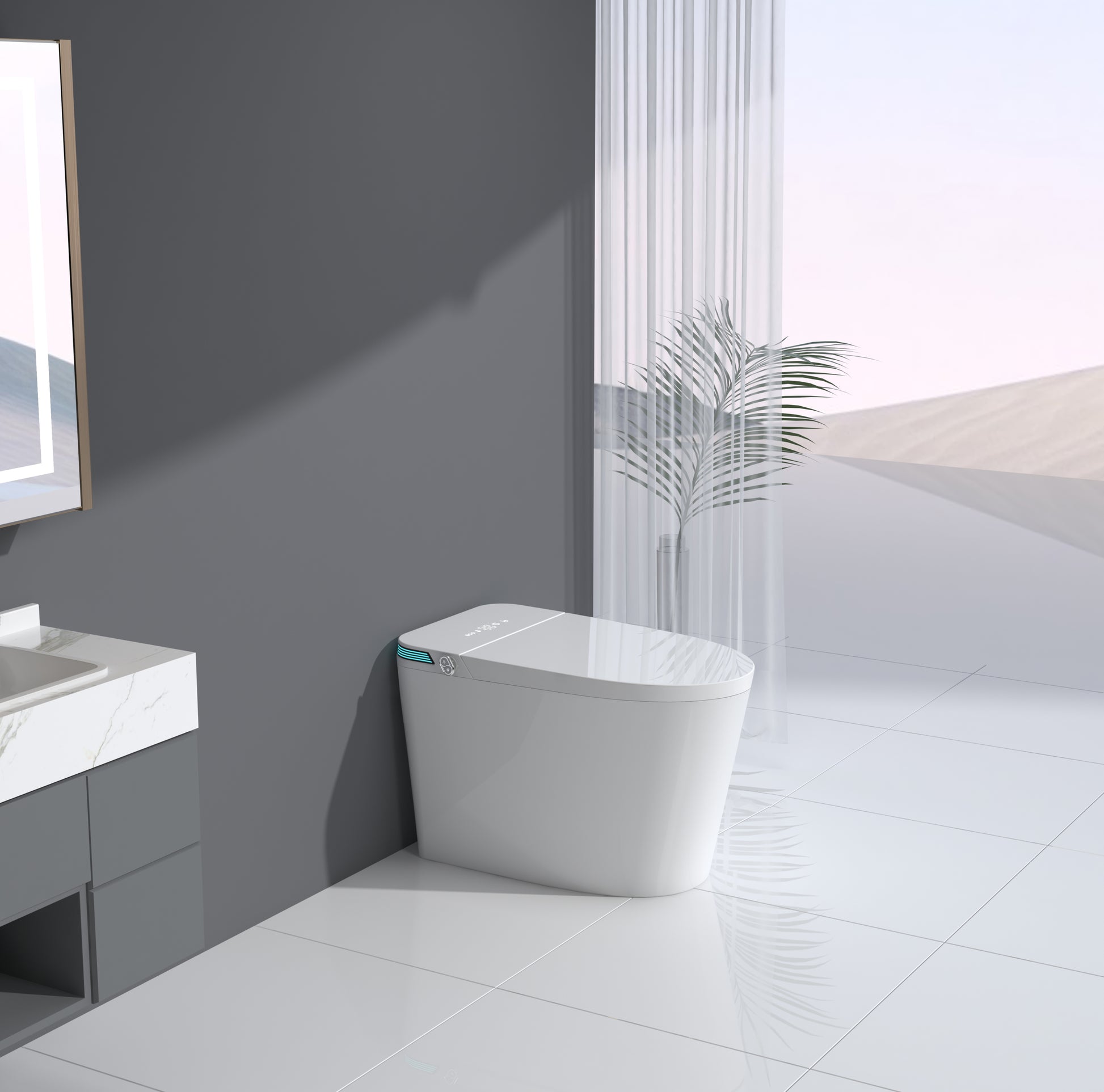 - Automatic Toilet: The elongated smart toilet with the ultimate convenience with off-seat, side button, foot sensing, and remote-control flushing. Enjoy a truly hands-free operation that enhances your bathroom experience.