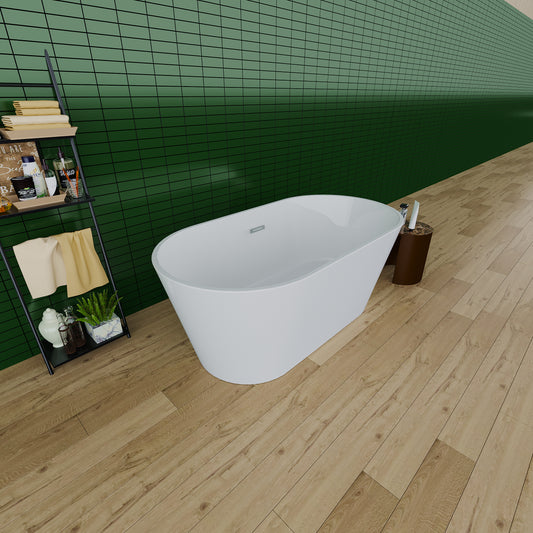 55" Acrylic Freestanding Bathtub, Contemporary Soaking Tub with Chrome Overflow and Drain in High-Gloss White Finish, cUPC Certified for Quality Assurance 55.12" * 31.1", 22A02-55