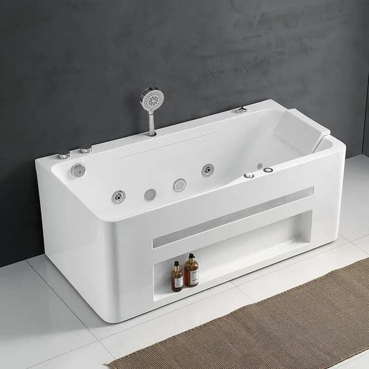 60" Modern Acrylic Rectangular Whirlpool Water Massage Bathtub in Chromatherapy LED