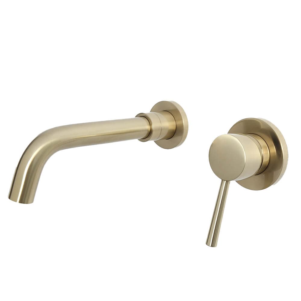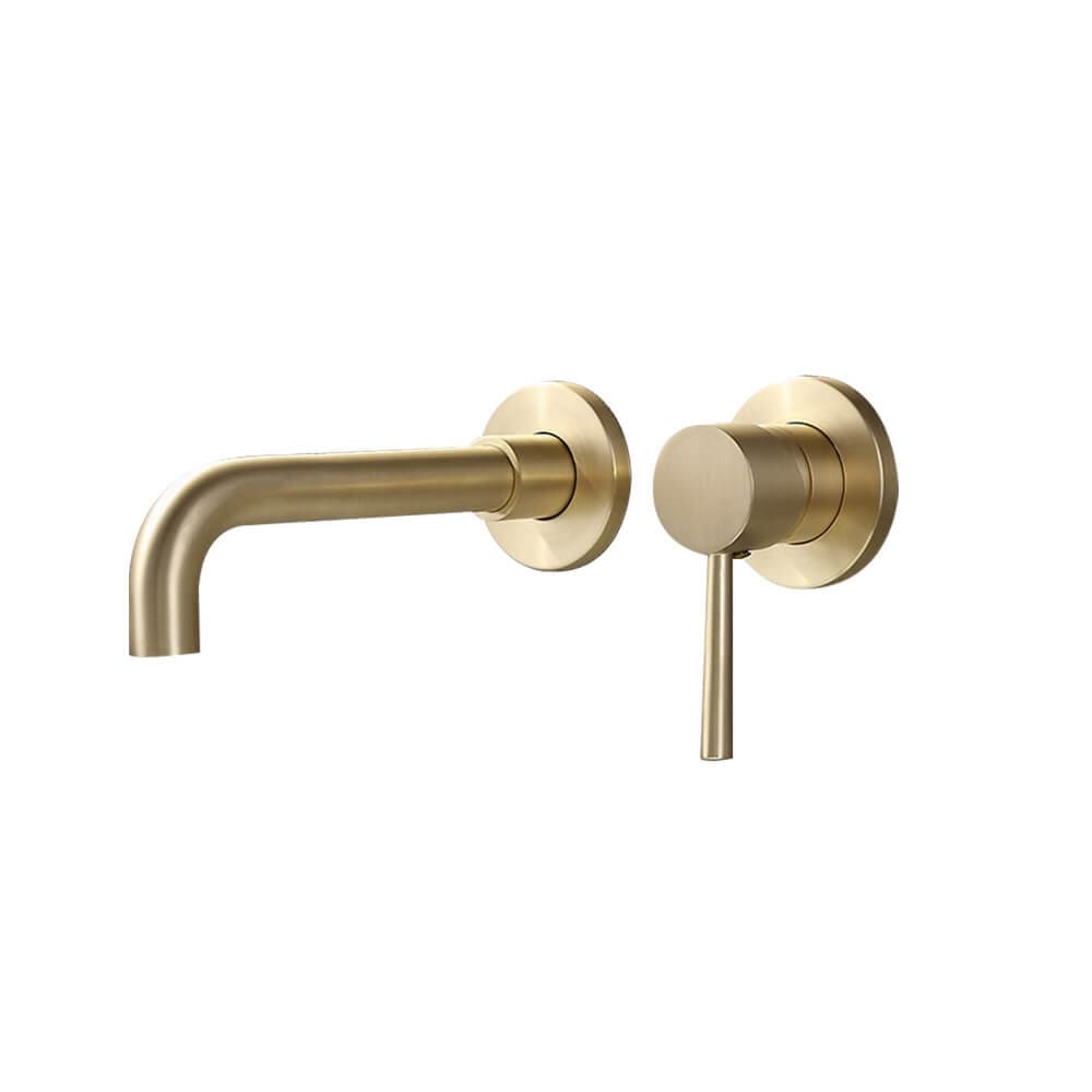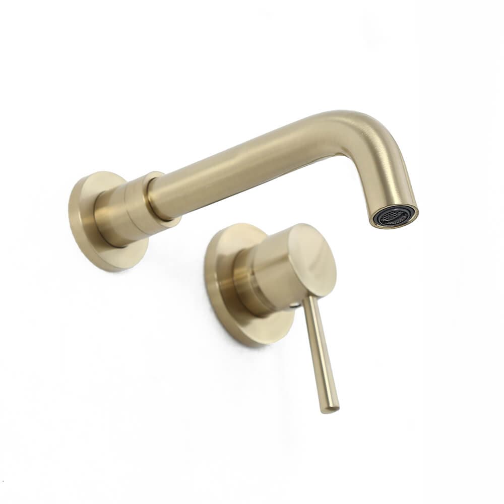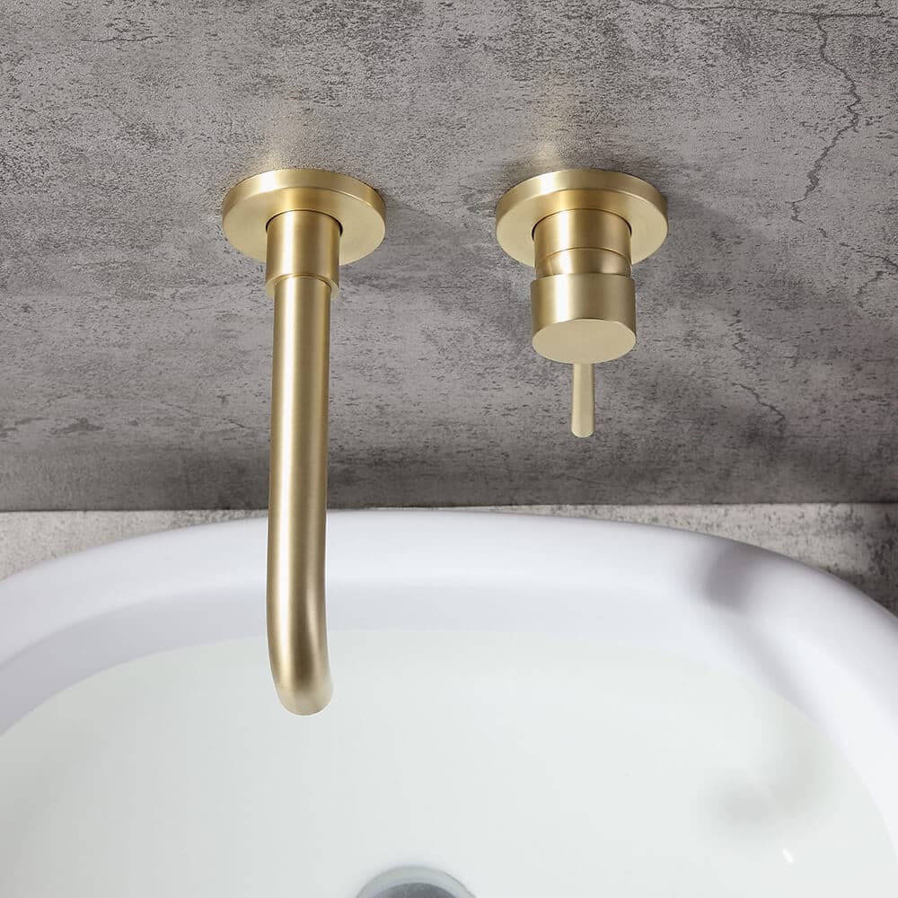 Robinet de salle de bains mural à levier unique en laiton brossé, robinet d'évier pivotant en laiton