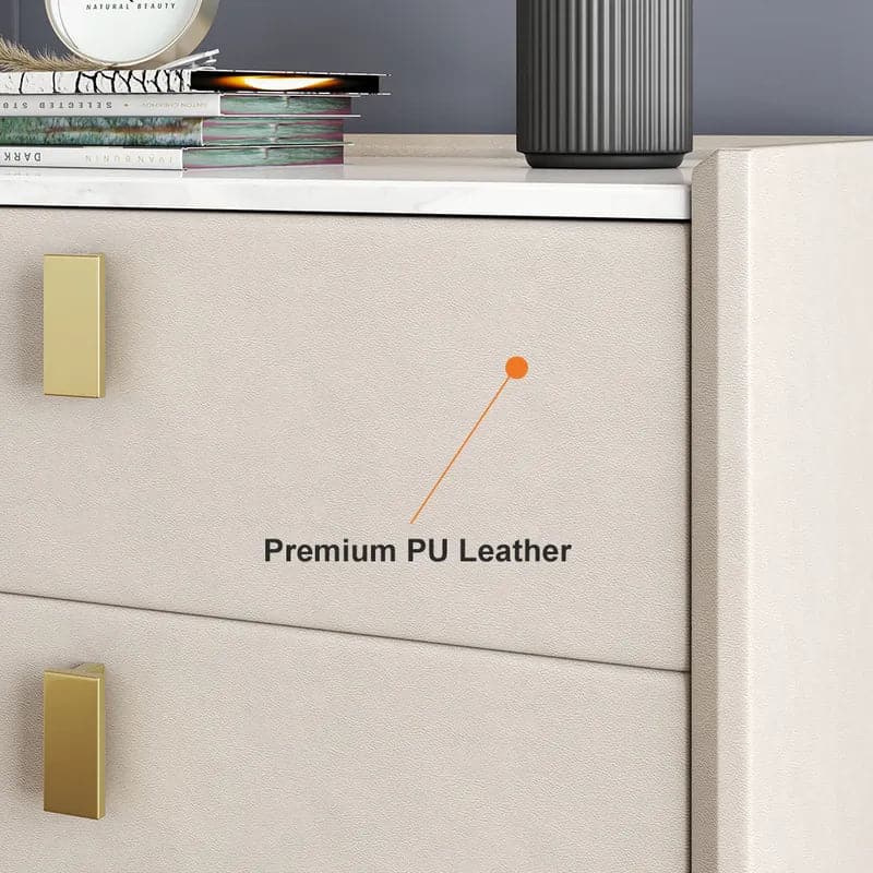 Cette jolie table de chevet a un look moderne à la fois élégant et fonctionnel, et elle attirera certainement l'attention de tous ceux qui la verront. La belle finition en cuir PU apportera une touche de sophistication à n'importe quel environnement de chambre. Il a un design simple et moderne qui apportera un charme luxueux à votre espace et votre chambre semblera plus élégante. Deux grands tiroirs de rangement offrent suffisamment d'espace de rangement pour tous vos essentiels de chevet, aidant ainsi à garder la zone autour de votre lit propre et bien rangée. Cette table de chevet peut être utilisée seule ou en conjonction avec d'autres meubles de votre maison. Elle sera le complément idéal à votre salon ou votre chambre pour créer une esthétique intemporelle.