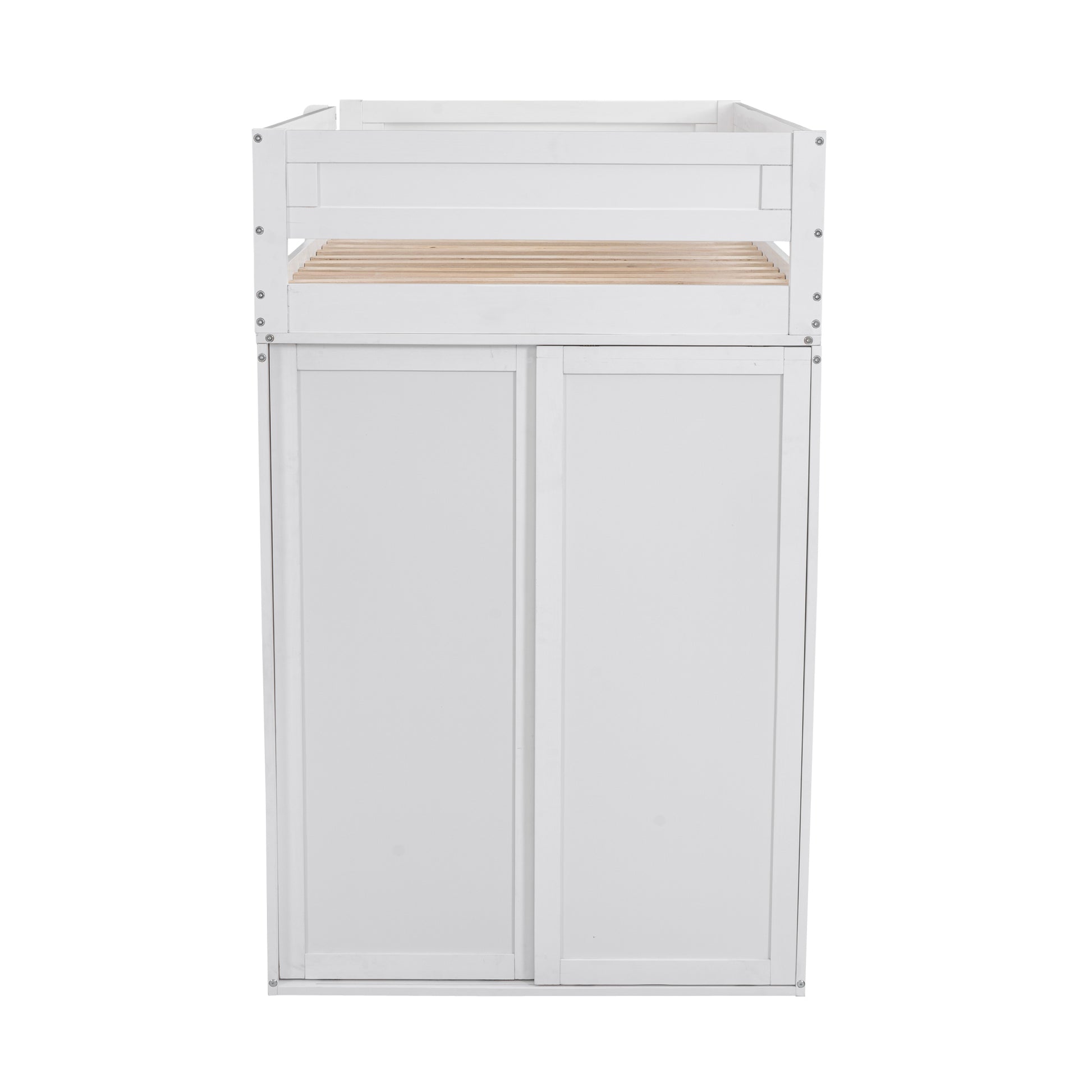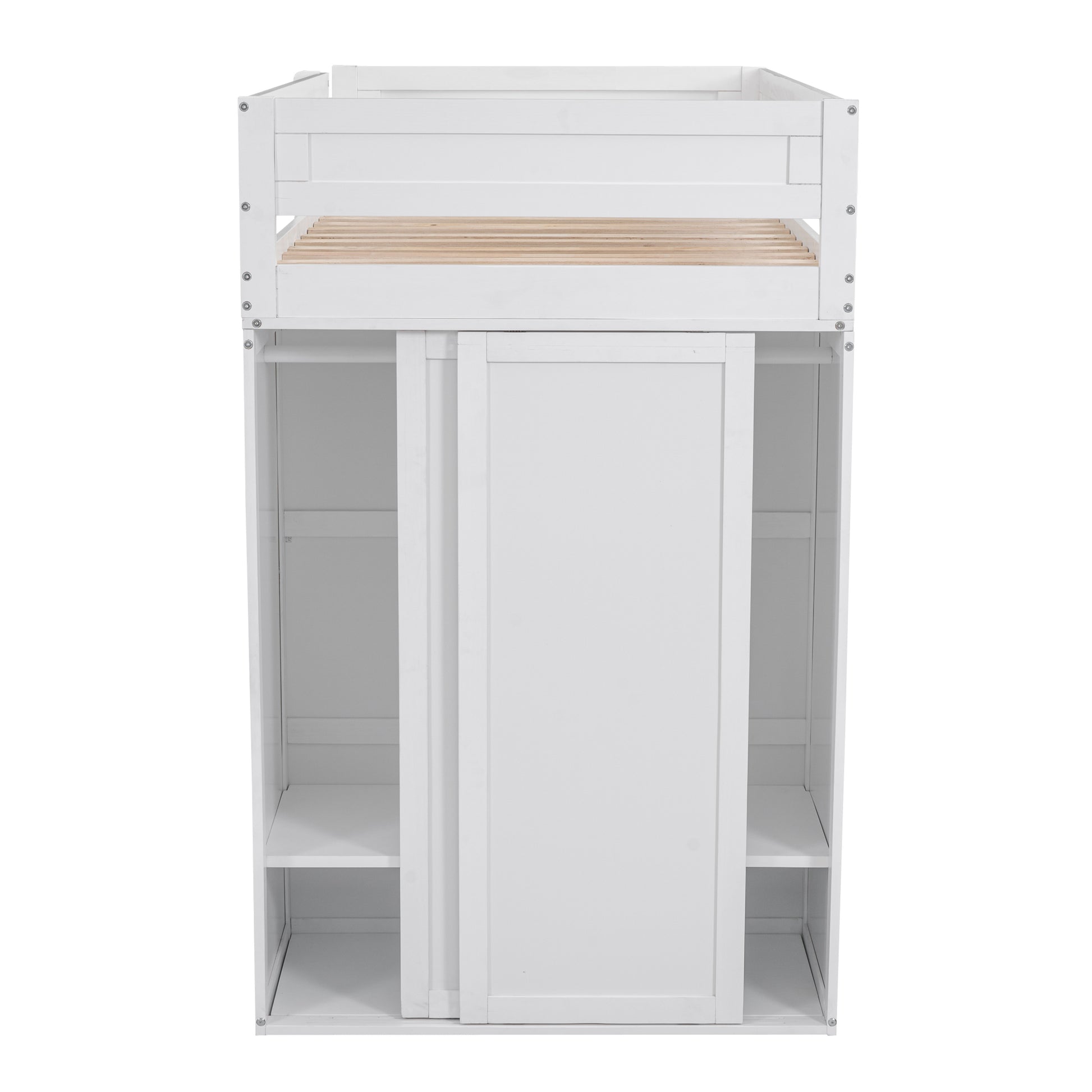 Lit mezzanine double en bois avec armoires et bureau à 2 tiroirs avec armoire, blanc