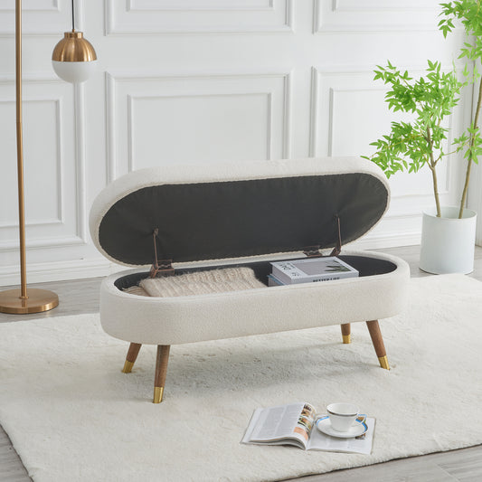 Banc de rangement Ottoman boucle rembourré avec pieds en métal doré, banc de lit pour chambre à coucher, salon, entrée, côté lit (ivoire)