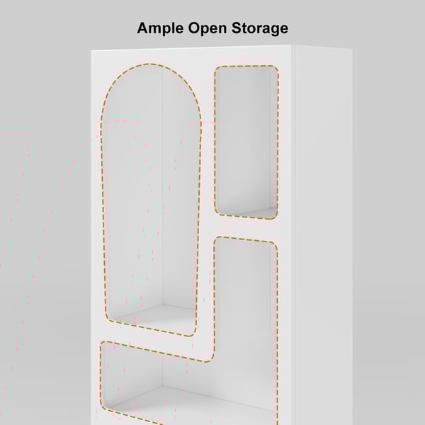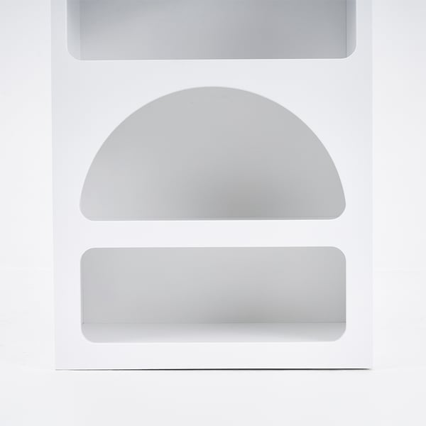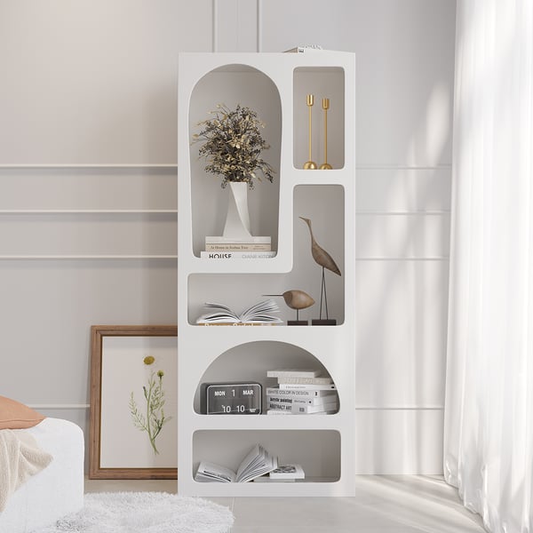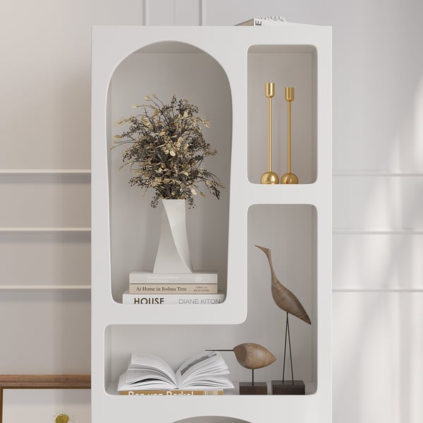 Home Bibliothèques Bibliothèque arquée blanche Art déco de 59,1 pouces, grande bibliothèque japonaise ouverte géométrique en bois