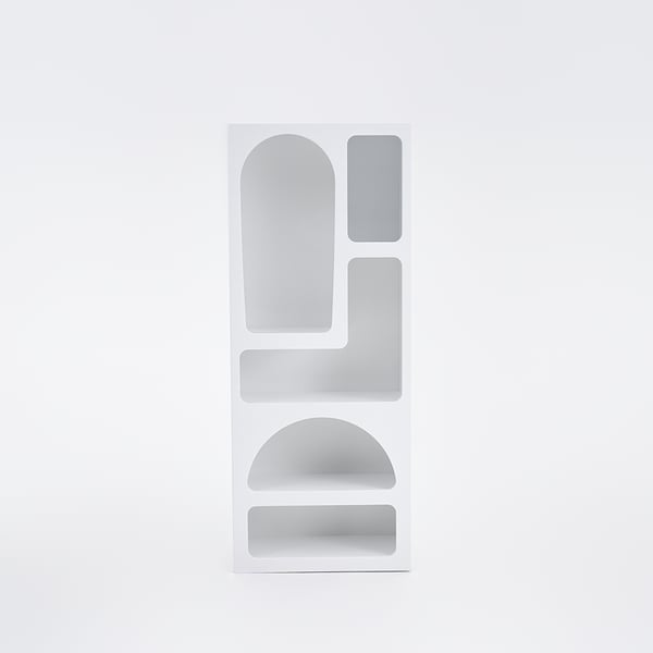 Exposez des photos encadrées, des plantes en pot et des accents artistiques dans un style affirmé avec cette bibliothèque. Présentant une silhouette géométrique saisissante, ce design moderne dispose de rangements irréguliers avec différentes hauteurs et largeurs qui offrent une place pour des objets précieux de toutes tailles.