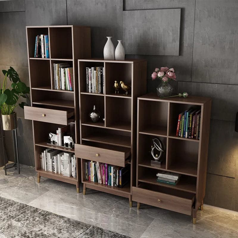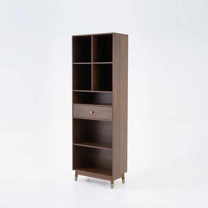 Bibliothèque moderne en noyer avec cadre et tiroir en métal Ultic