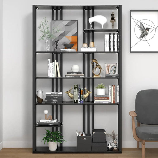 Étagère moderne en acier de 78 pouces, présentoir à 6 étagères en noir, grande étagère à livres