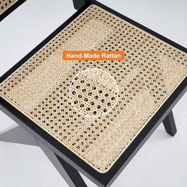 Chaise de salle à manger noire moderne, chaise d'appoint en rotin et bois de frêne