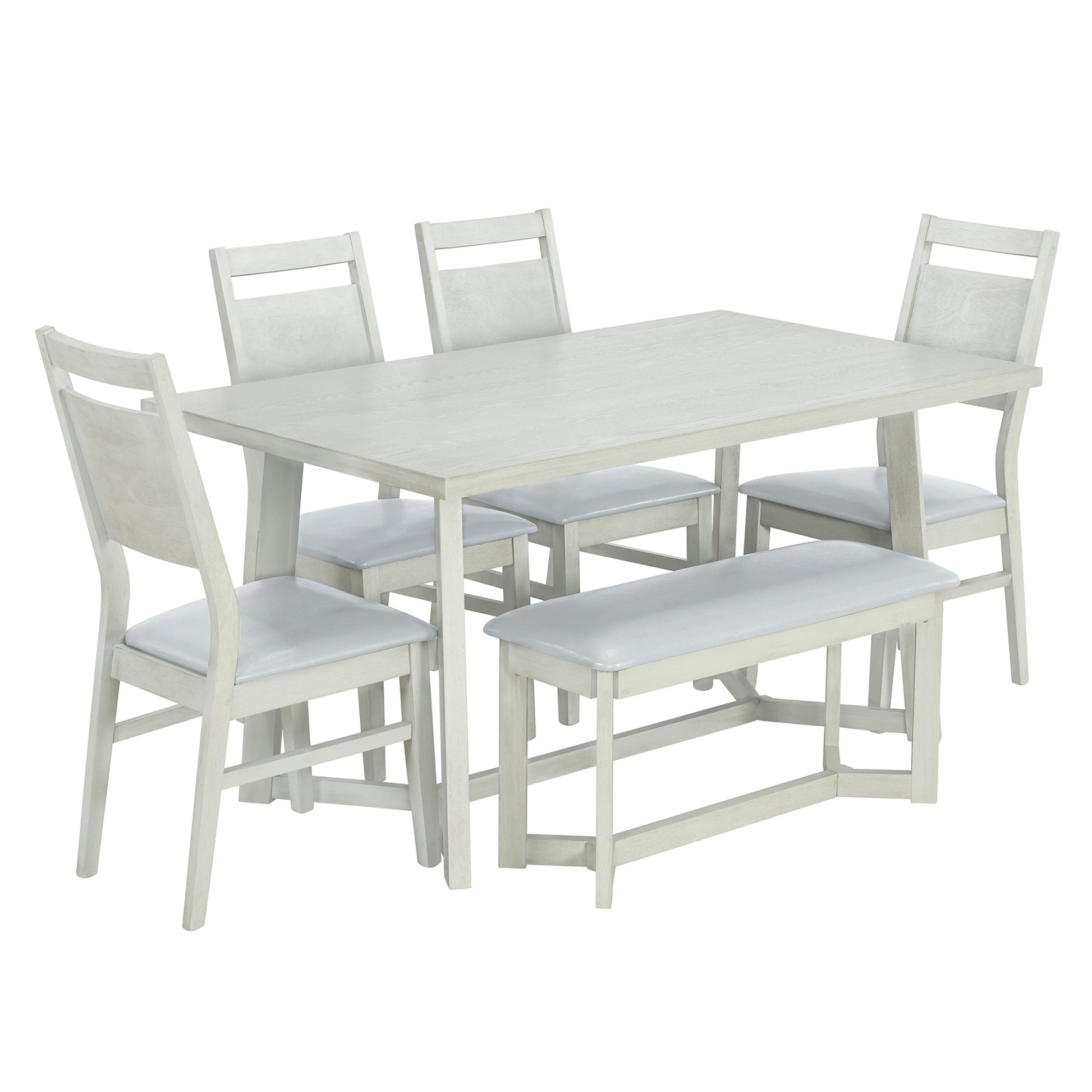 TOPMAX Farmhouse Ensemble de table de salle à manger en bois 6 pièces avec 4 chaises et banc rembourrés Gris