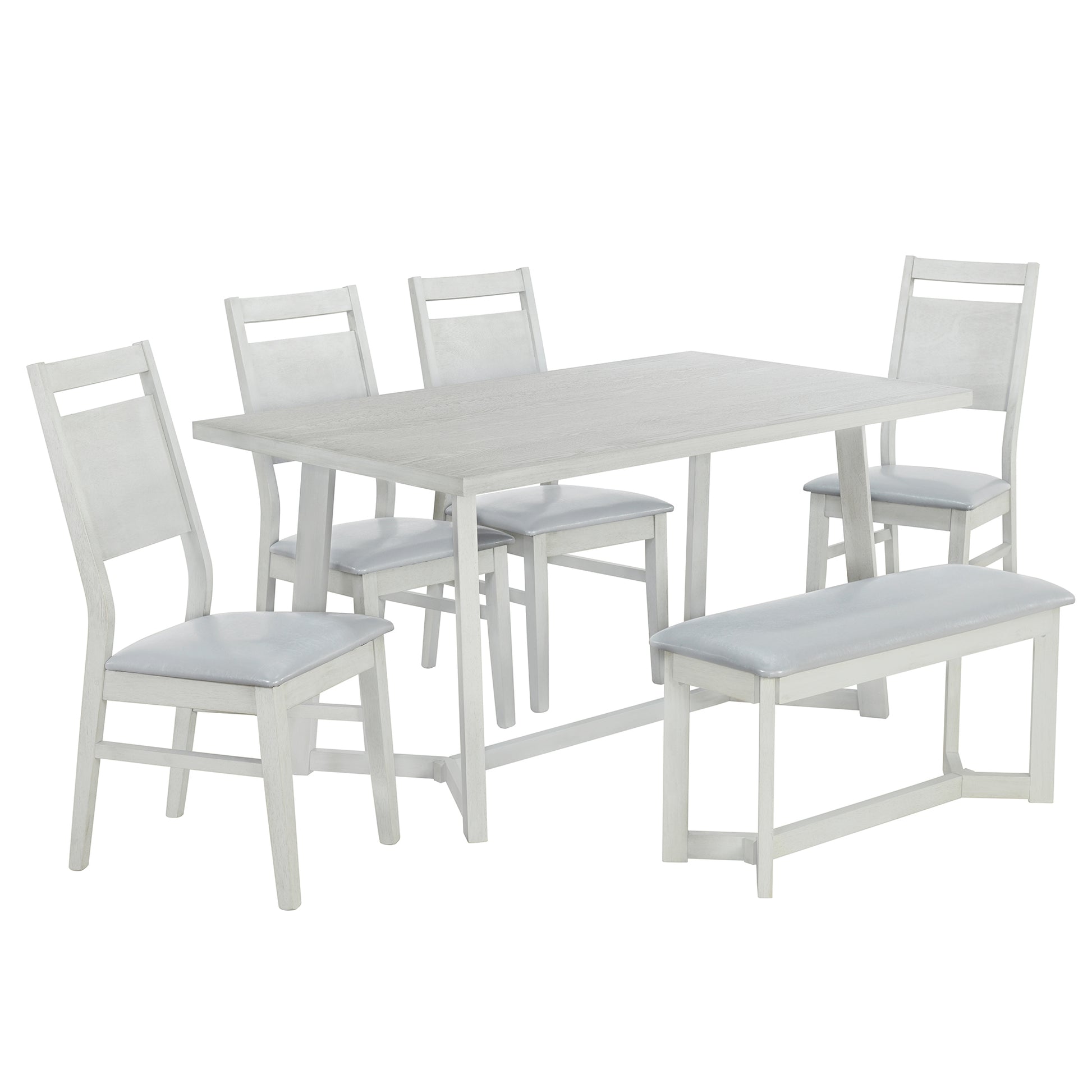 Home Tables à manger TOPMAX Farmhouse Ensemble de table de salle à manger en bois 6 pièces avec 4 chaises et banc rembourrés Gris