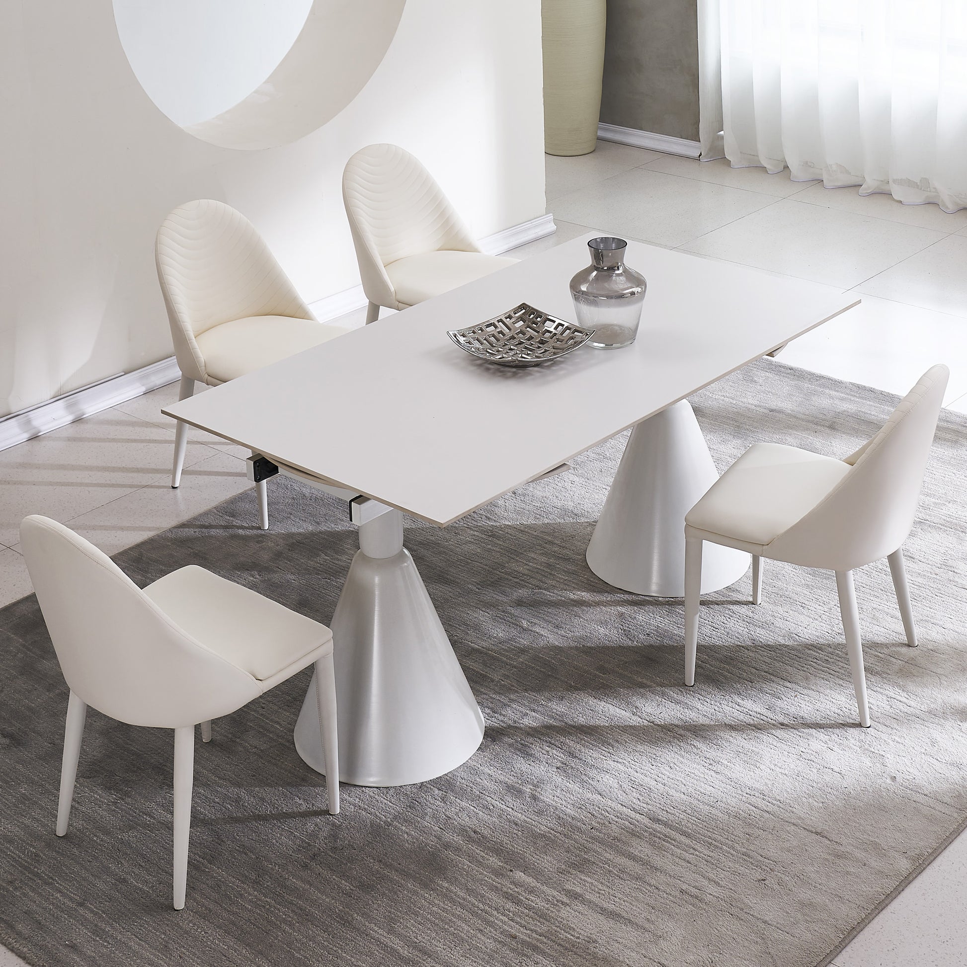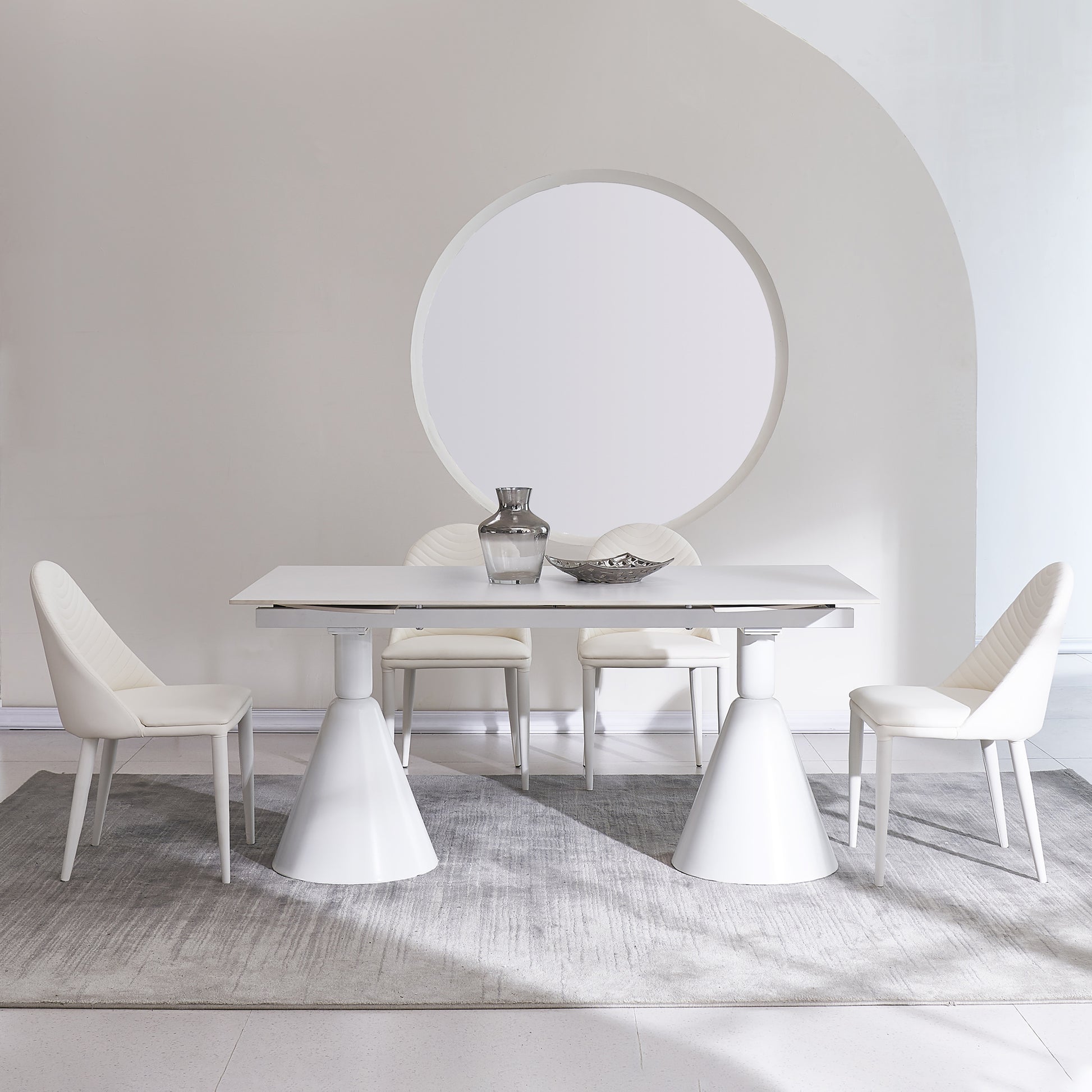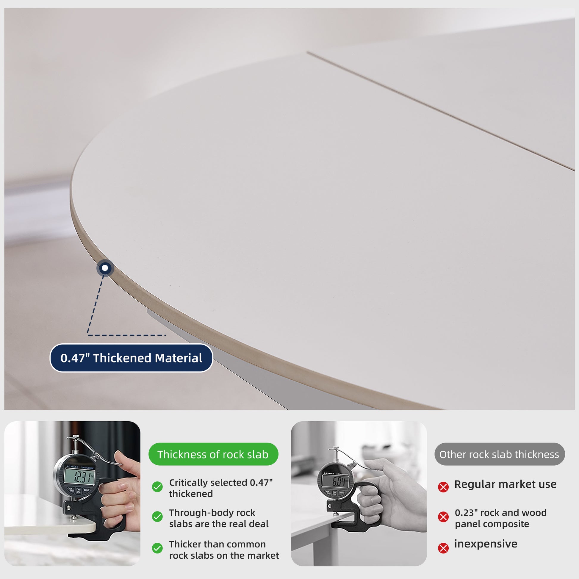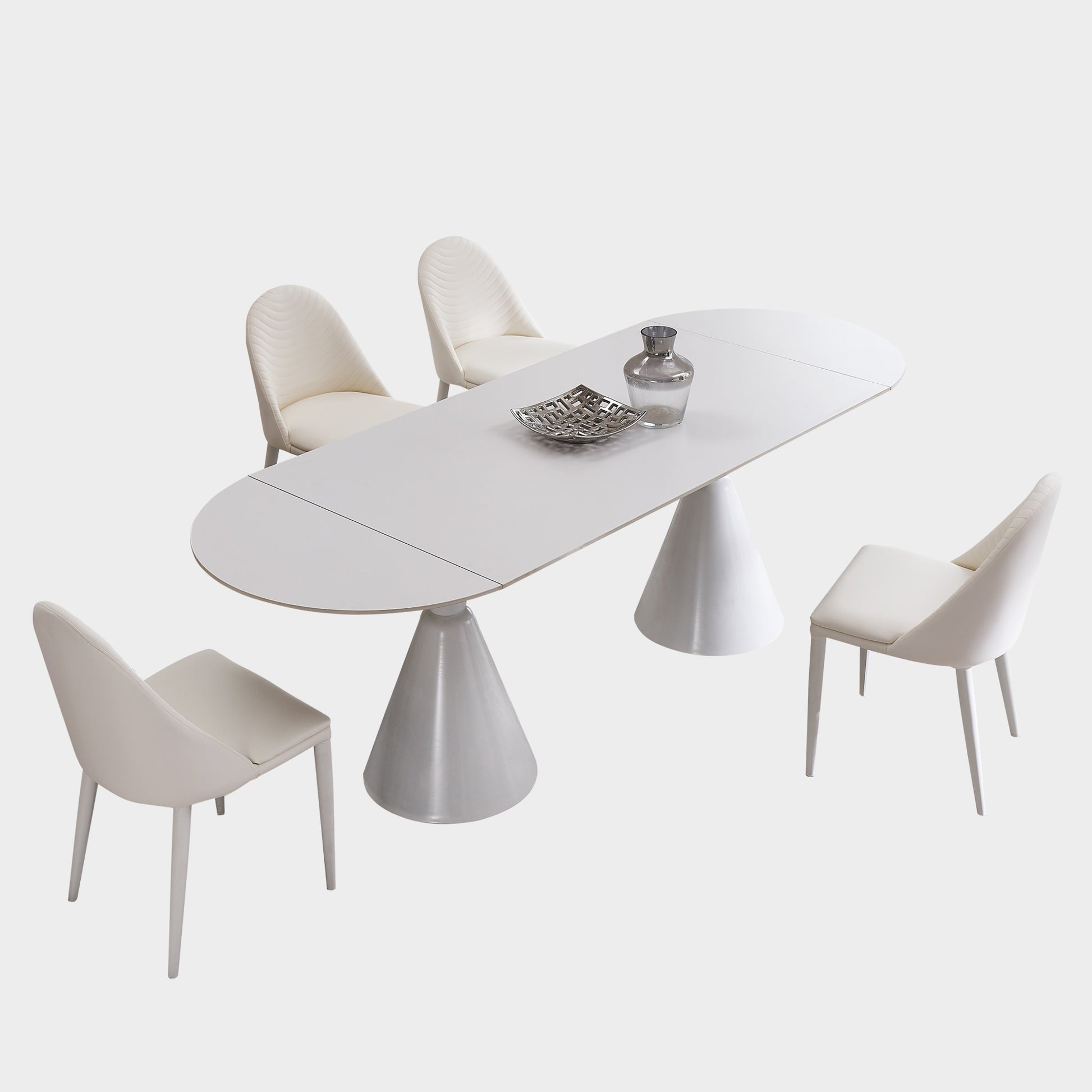 Table de salle à manger blanche extensible ovale moderne de 94,9 po pour 8 personnes avec plateau en pierre frittée et base en acier inoxydable