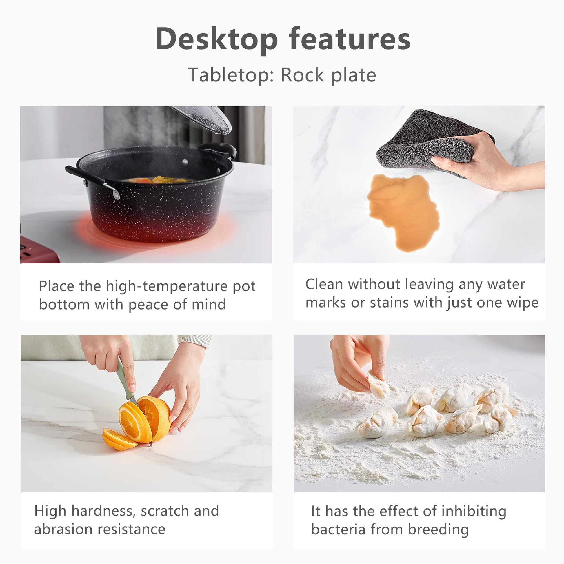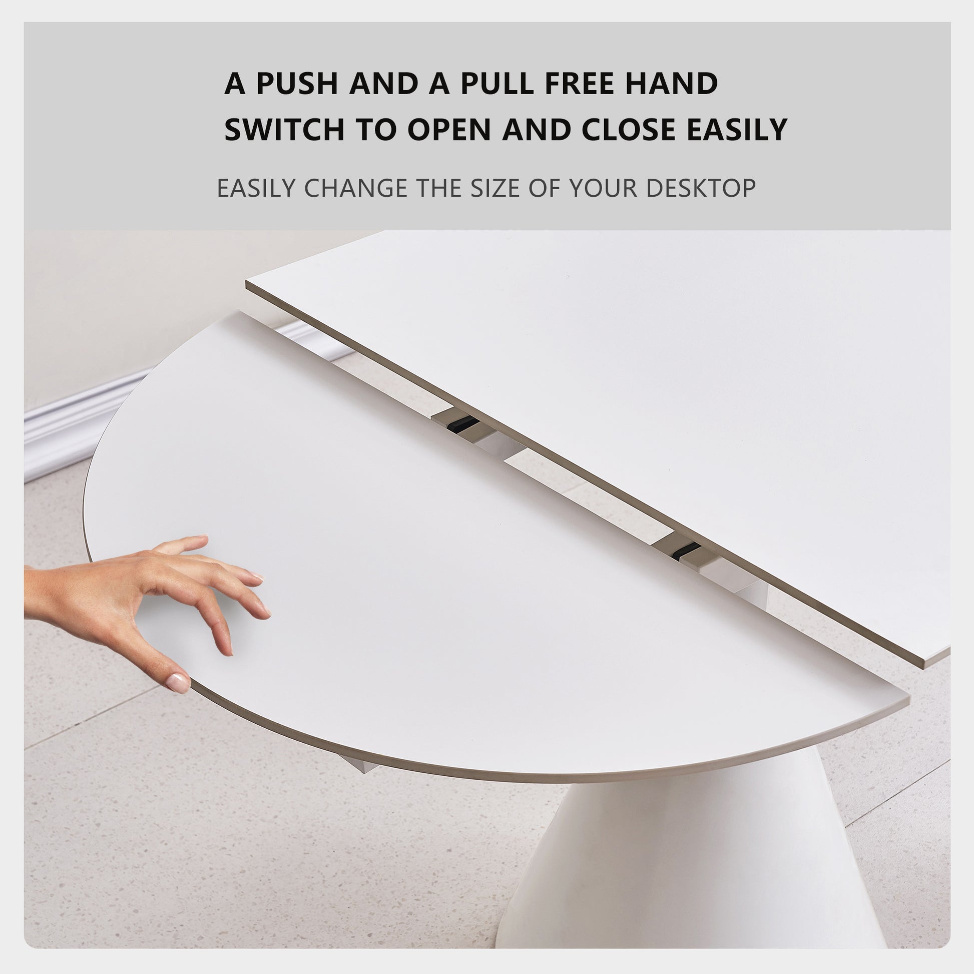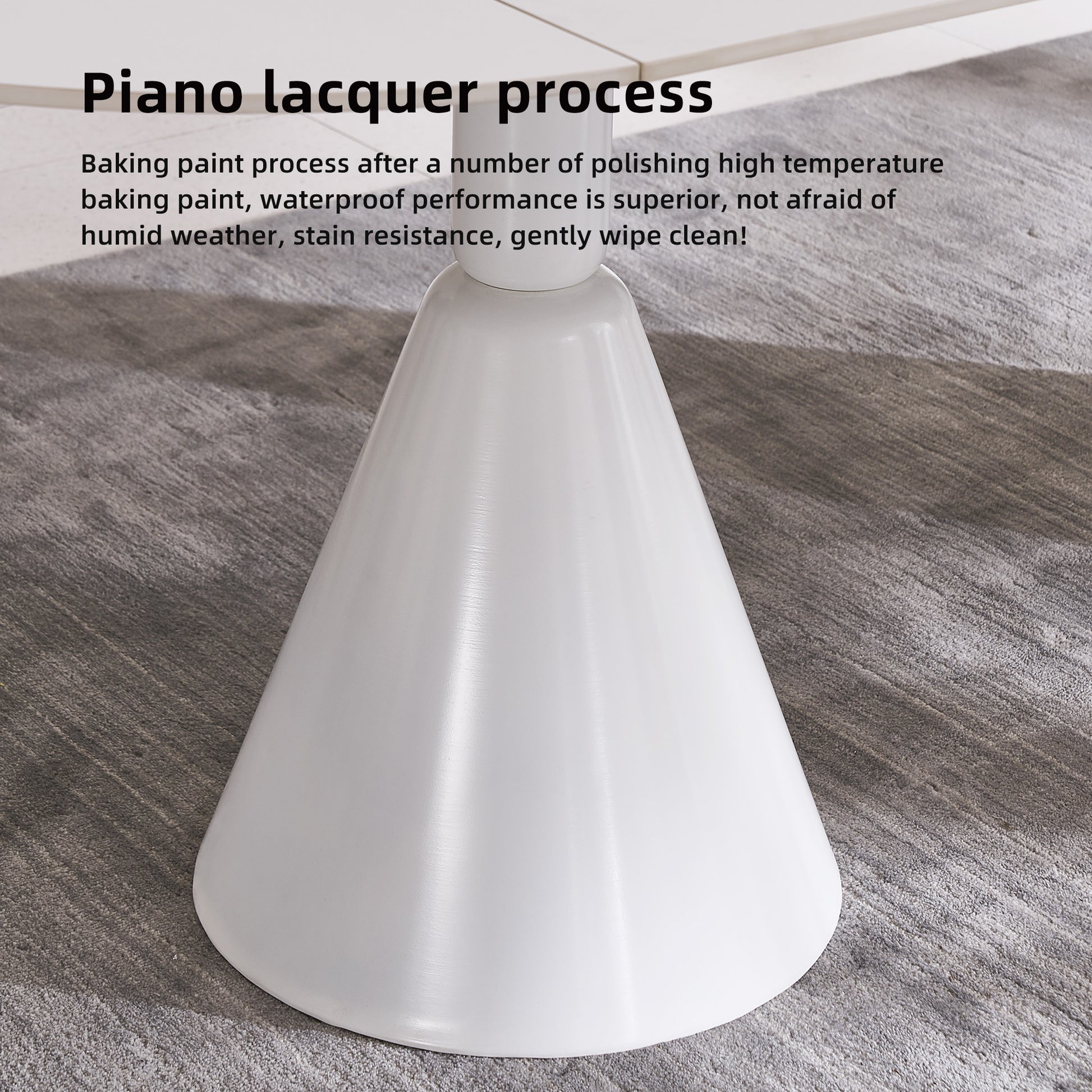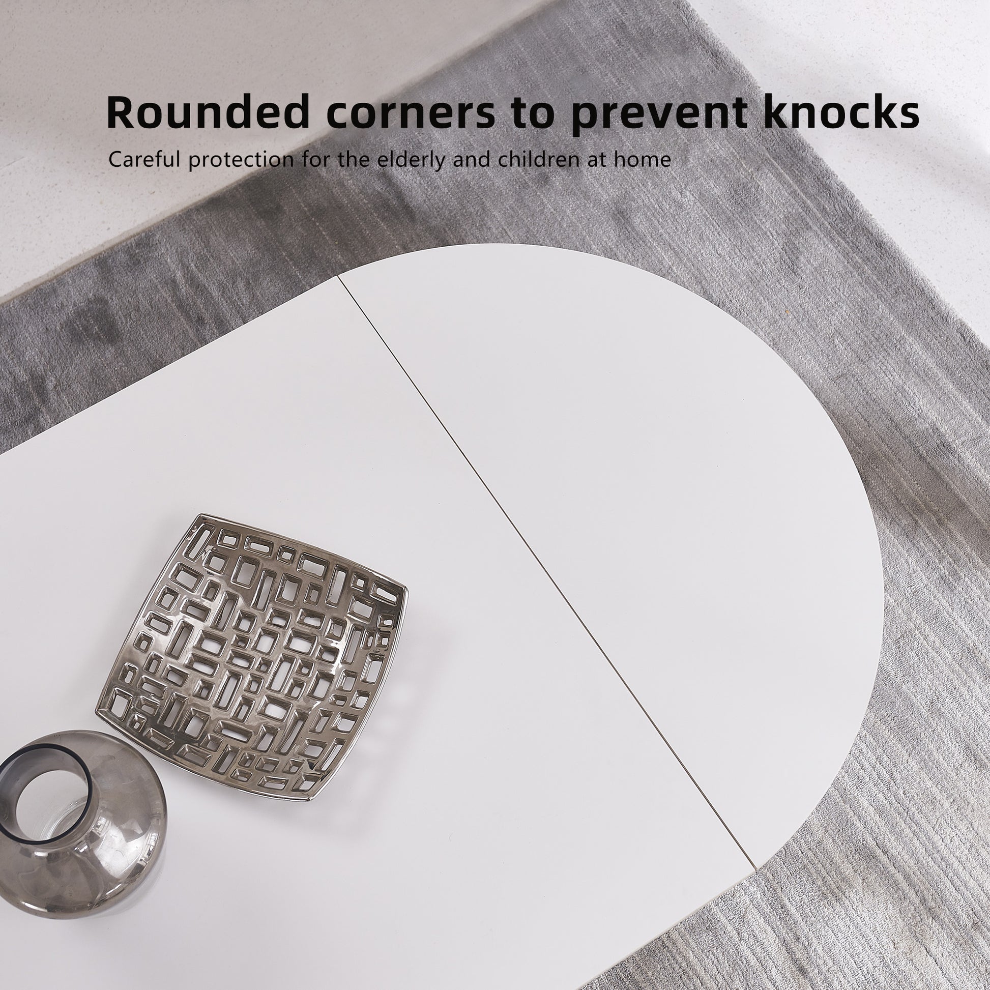 Table de salle à manger blanche extensible ovale moderne de 94,9 po pour 8 personnes avec plateau en pierre frittée et base en acier inoxydable