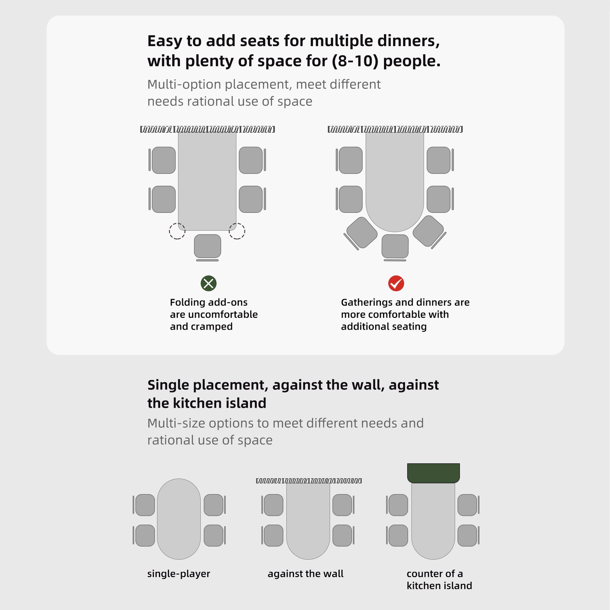 Donnez à votre salle à manger une touche Japandi avec cette table à manger. La conception des coins arrondis et lisses évite les rayures, particulièrement sans danger pour les personnes âgées et les enfants. Grâce à sa conception extensible, le plateau de notre table à manger peut être rallongé pour accueillir jusqu'à 8 personnes. Cependant, pour garantir une expérience culinaire confortable avec suffisamment d'espace pour les jambes, nous vous recommandons d'accueillir 6 personnes en raison de l'espace limité en dessous. Pour ranger facilement les chaises sous la table, nous vous suggérons d'utiliser des chaises sans accoudoirs d'une largeur de 16,9". La base à double piédestal offrira des années de service tandis que le design texturé animera le design. Une table fonctionnelle conçue et construite par un savoir-faire expert.