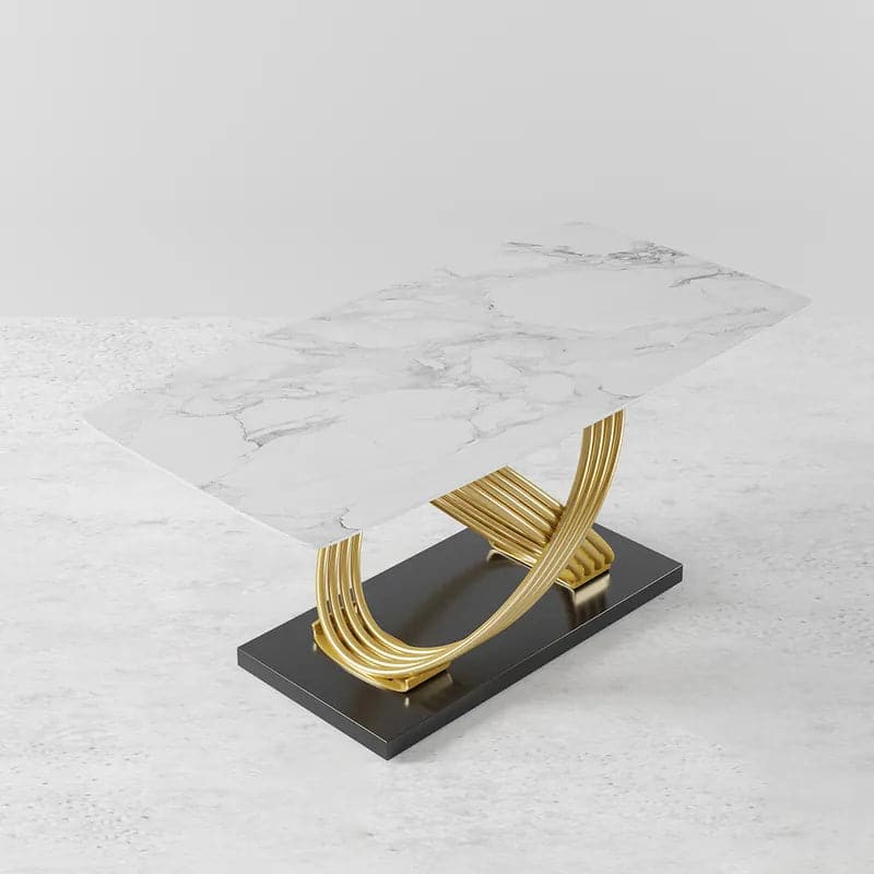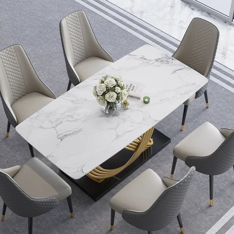 Table à manger en faux marbre blanc Table rectangulaire au design minimaliste moderne