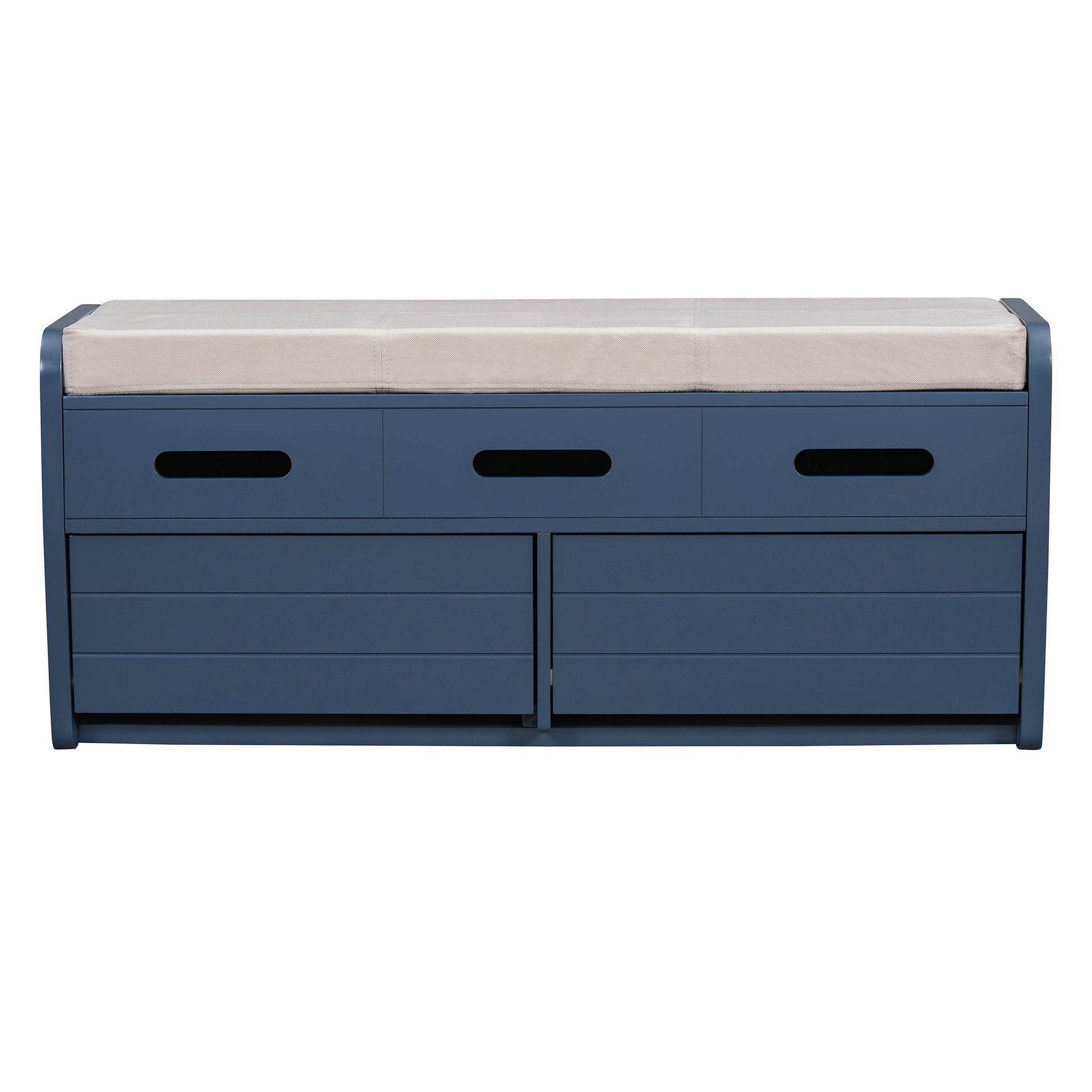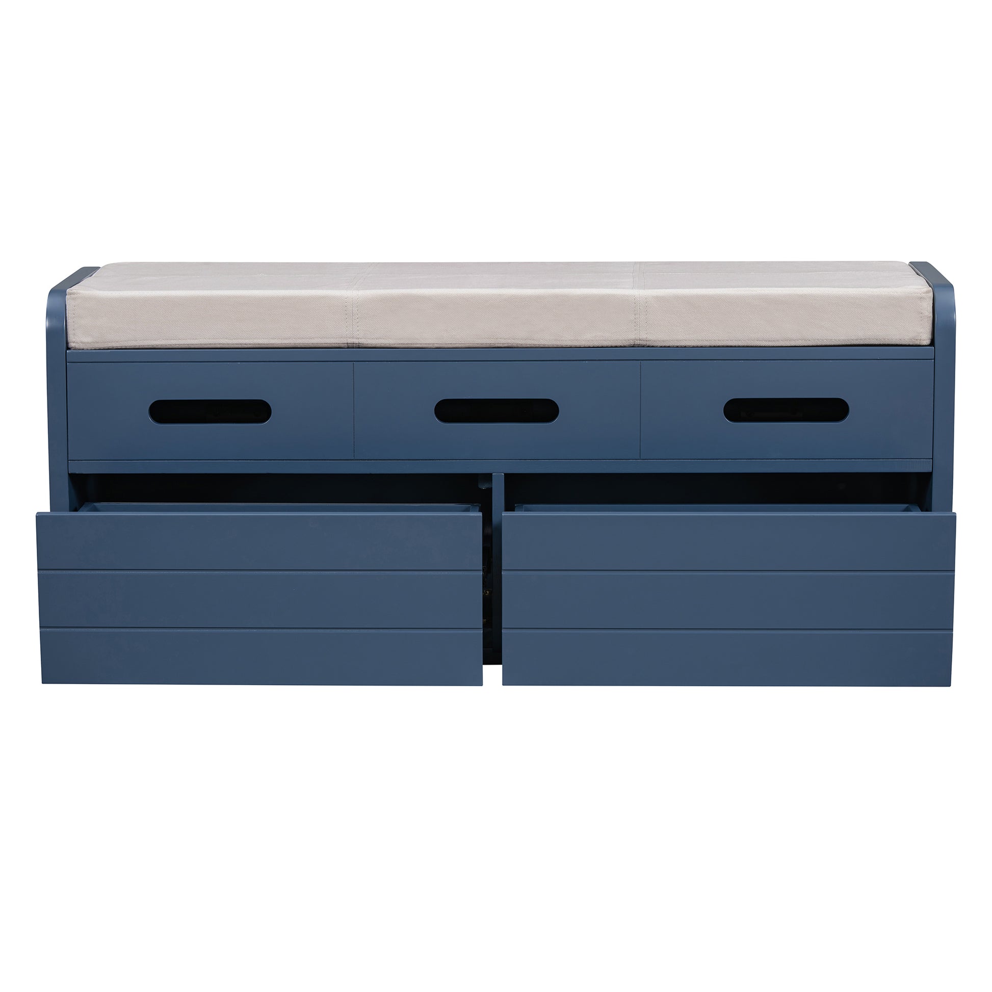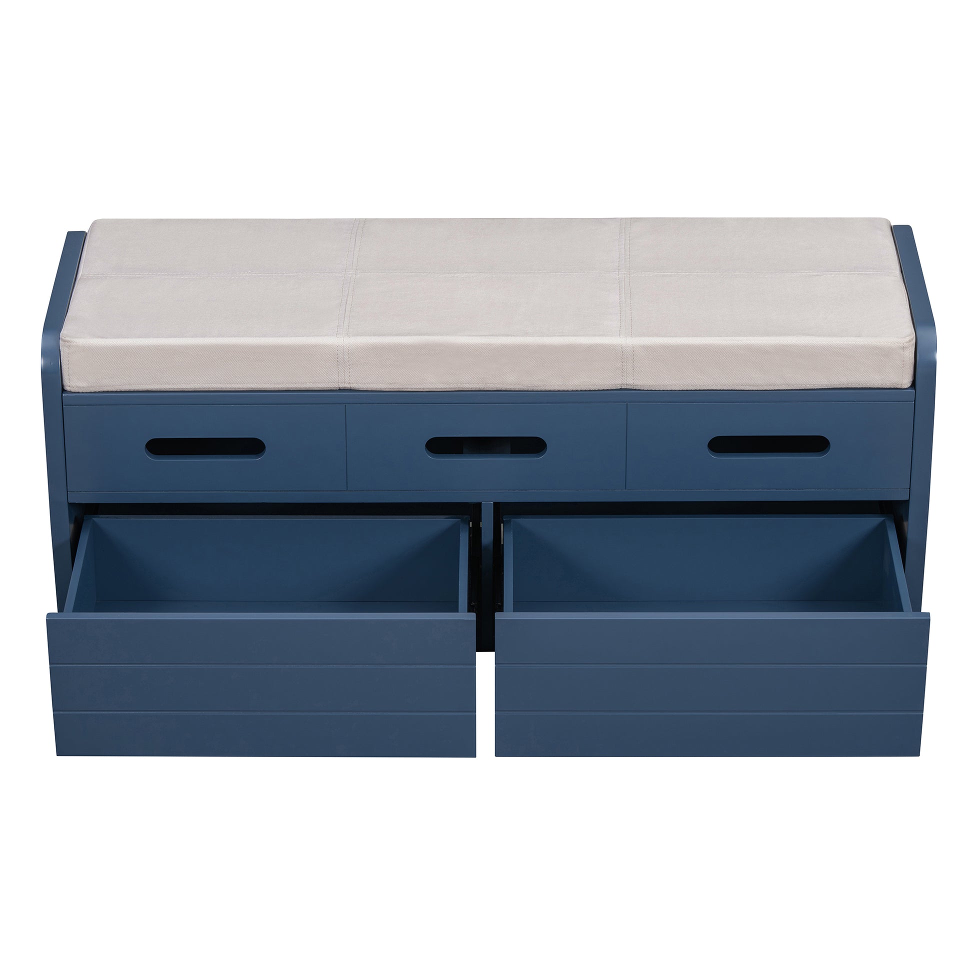 TREXM Rustic Storage Bench with 2 Drawers, Hidden Storage Space, and 3 False Drawers at the Top, Shoe Bench for Living Room, Entryway (Navy)