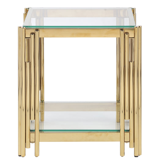 Woker Furniture 20" Wide Square End Table with Glass Top, Golden Stainless Steel Tempered Glass Coffee Table for Living Room&Bed Room