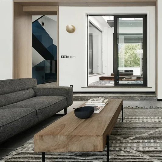 Petite table basse moderne de 39 pouces, table de cocktail rectangulaire étroite, plateau en bois de pin