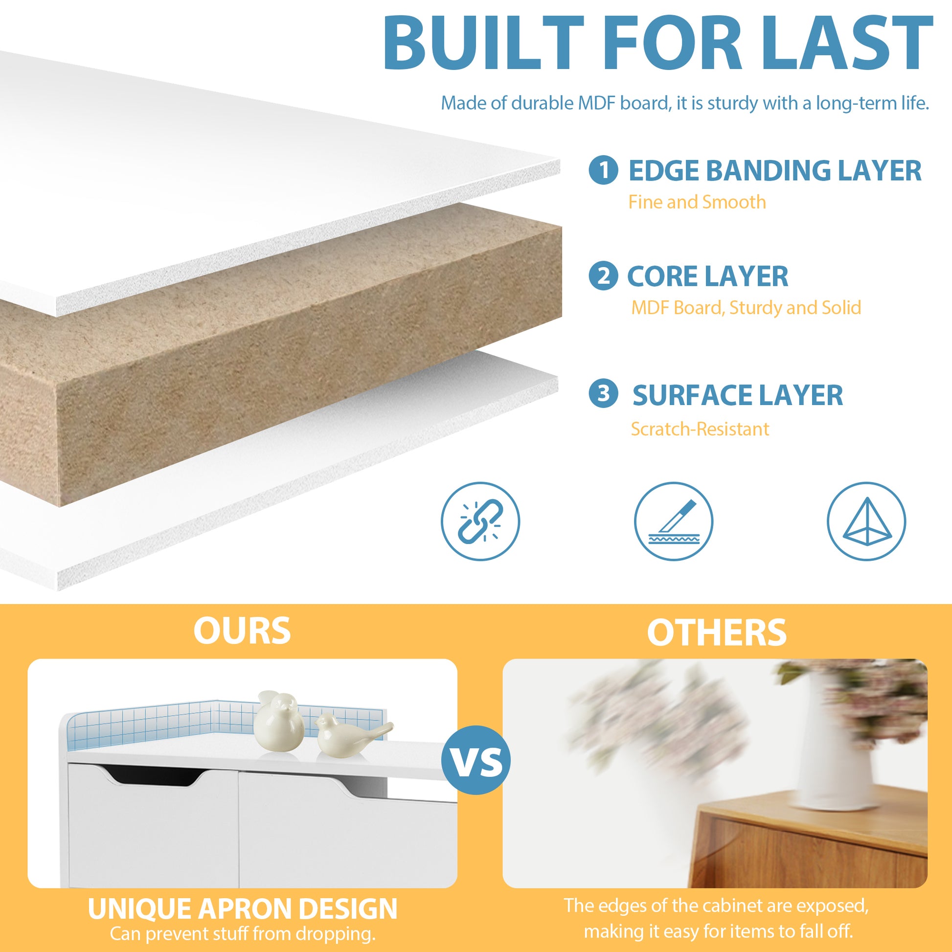 - With its minimalist design, this modern shoe cabinet is a versatile addition to any home! And it comes with apron design on the top to prevent stuffs from dropping.