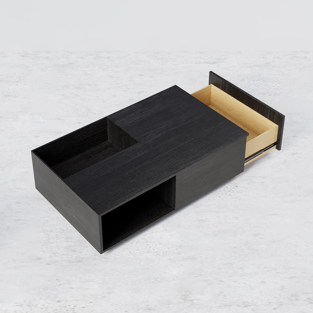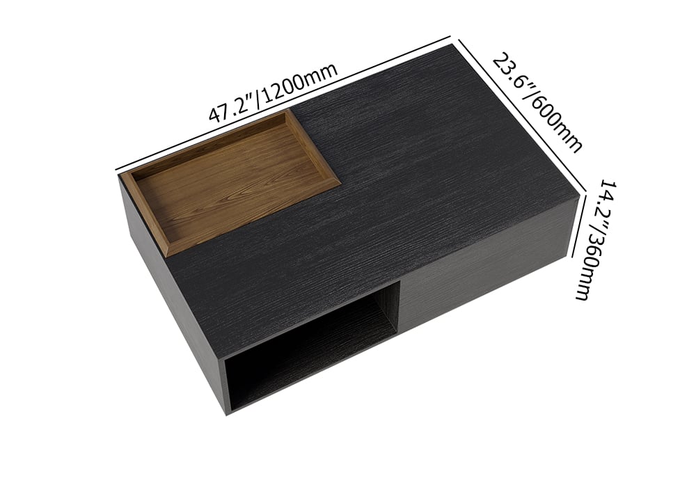 Rectangular Wood Coffee Table with Drawer & Removable Tray top Black & Walnut