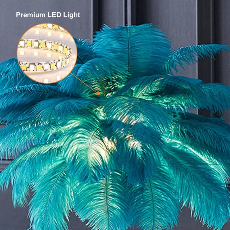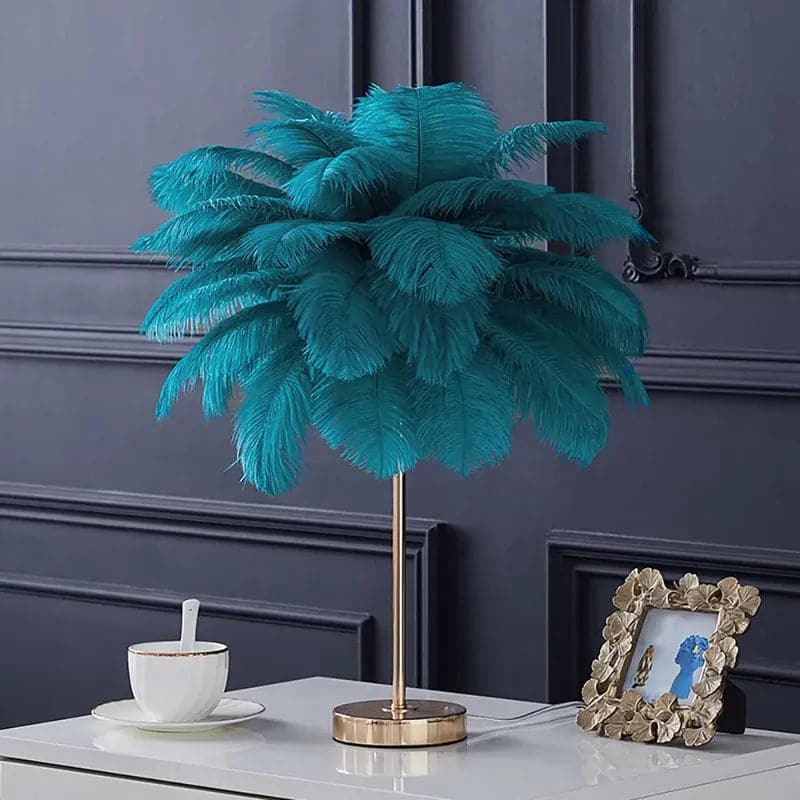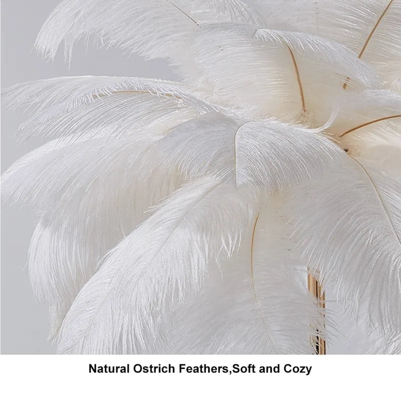 Lampe de table portable moderne en or avec plume blanche, chargement USB et intensité variable