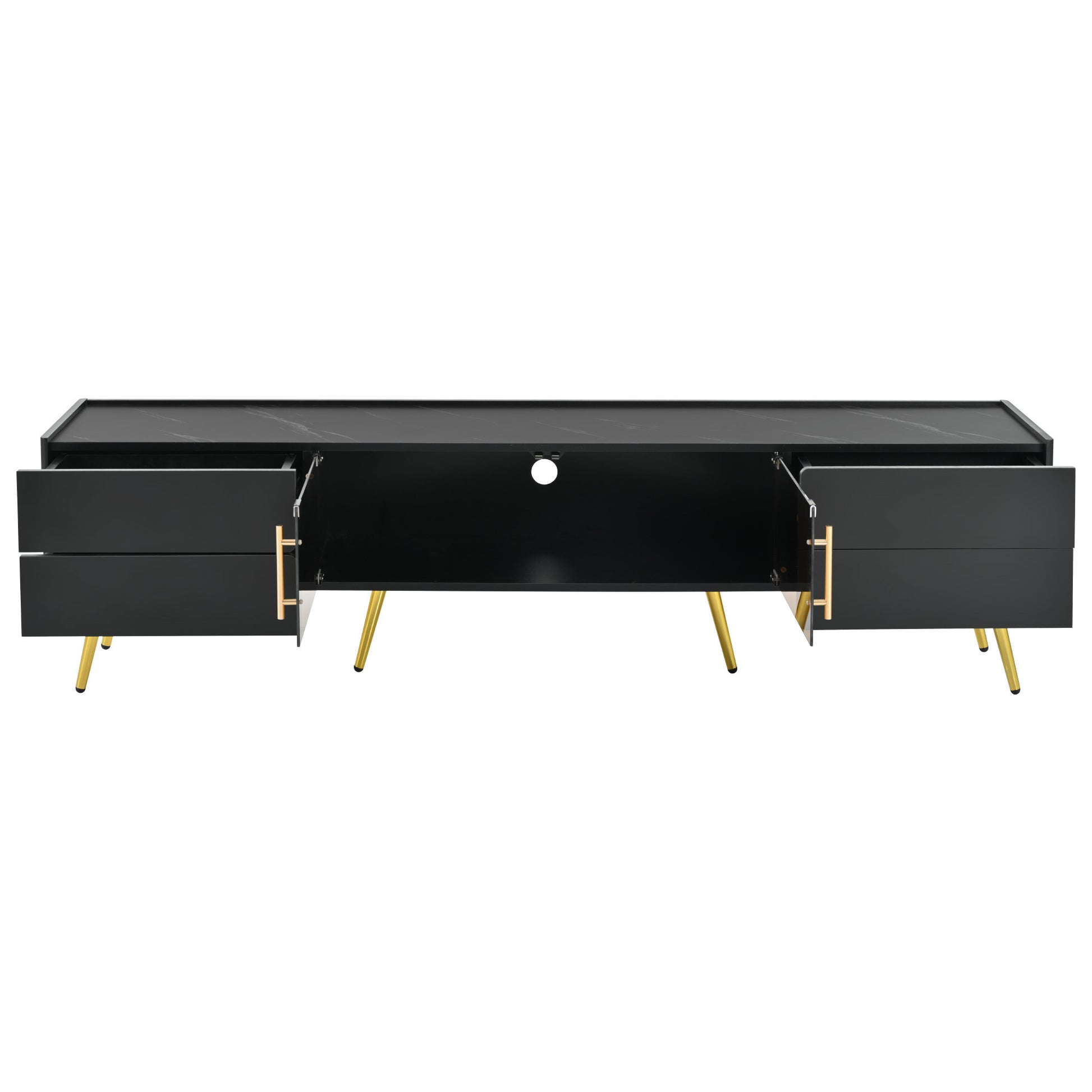 • Featuring four drawers and one spacious cabinet , this unit offers ample space to stow away all your entertainment essentials with ease. Whether it's DVDs, gaming consoles, or audiovisual equipment, the cabinets provide discreet storage solutions that keep clutter at bay while maintaining a clean and organized living space.