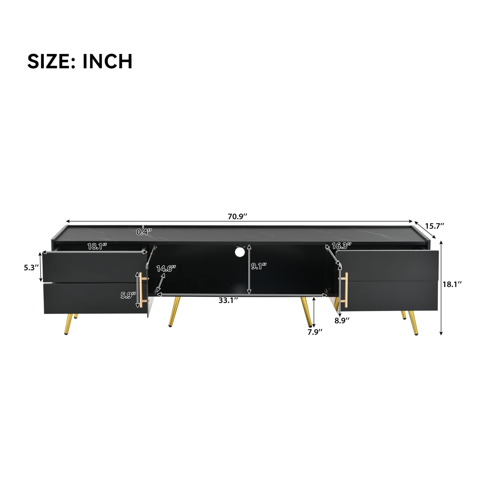 Overall Product Size 70.9'' W x 15.7'' D x 18.1'' H